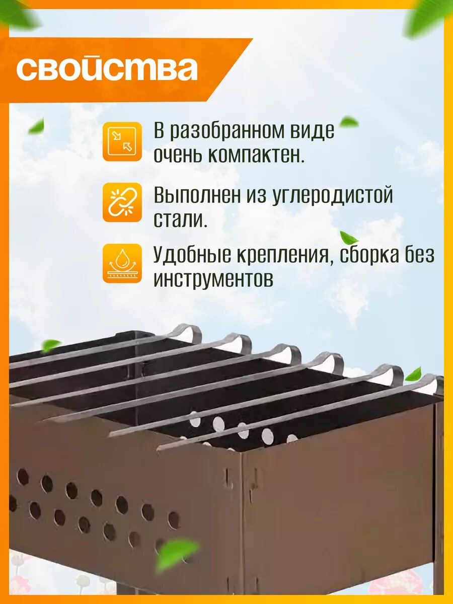 Мангал разборный складной для шашлыка и барбекю + 6 шампуров интересное: