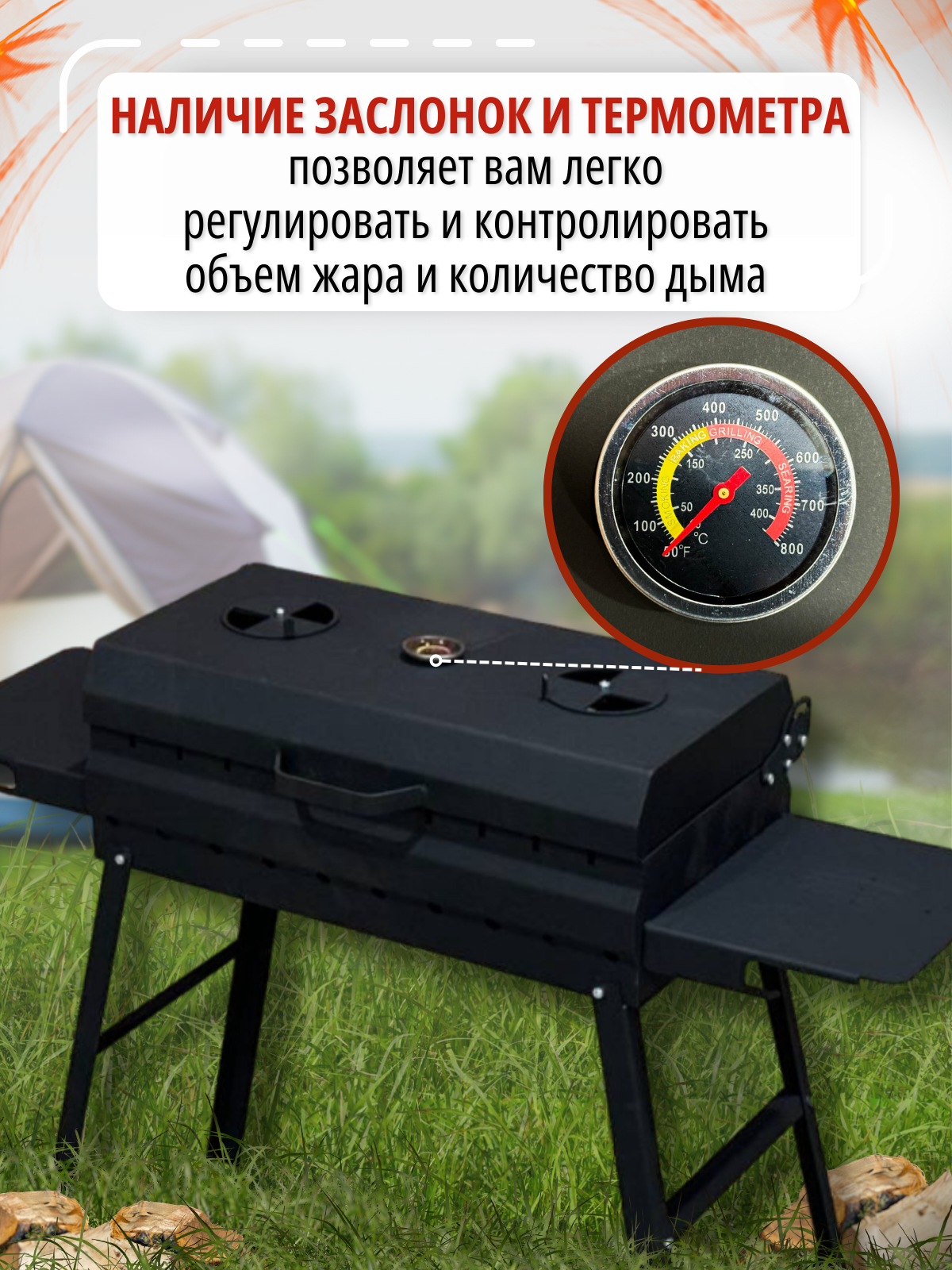 Мангал гриль KazanTop с крышкой для дачи шашлыка, 3 мм, с термометром