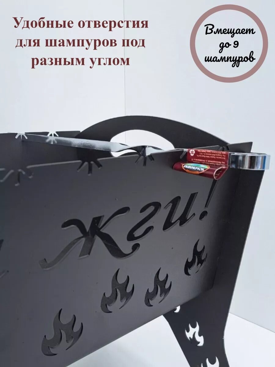 Мангал чемодан складной разборный на ножках, на 11 шампуров, переносной, черная сталь, длина 65 см