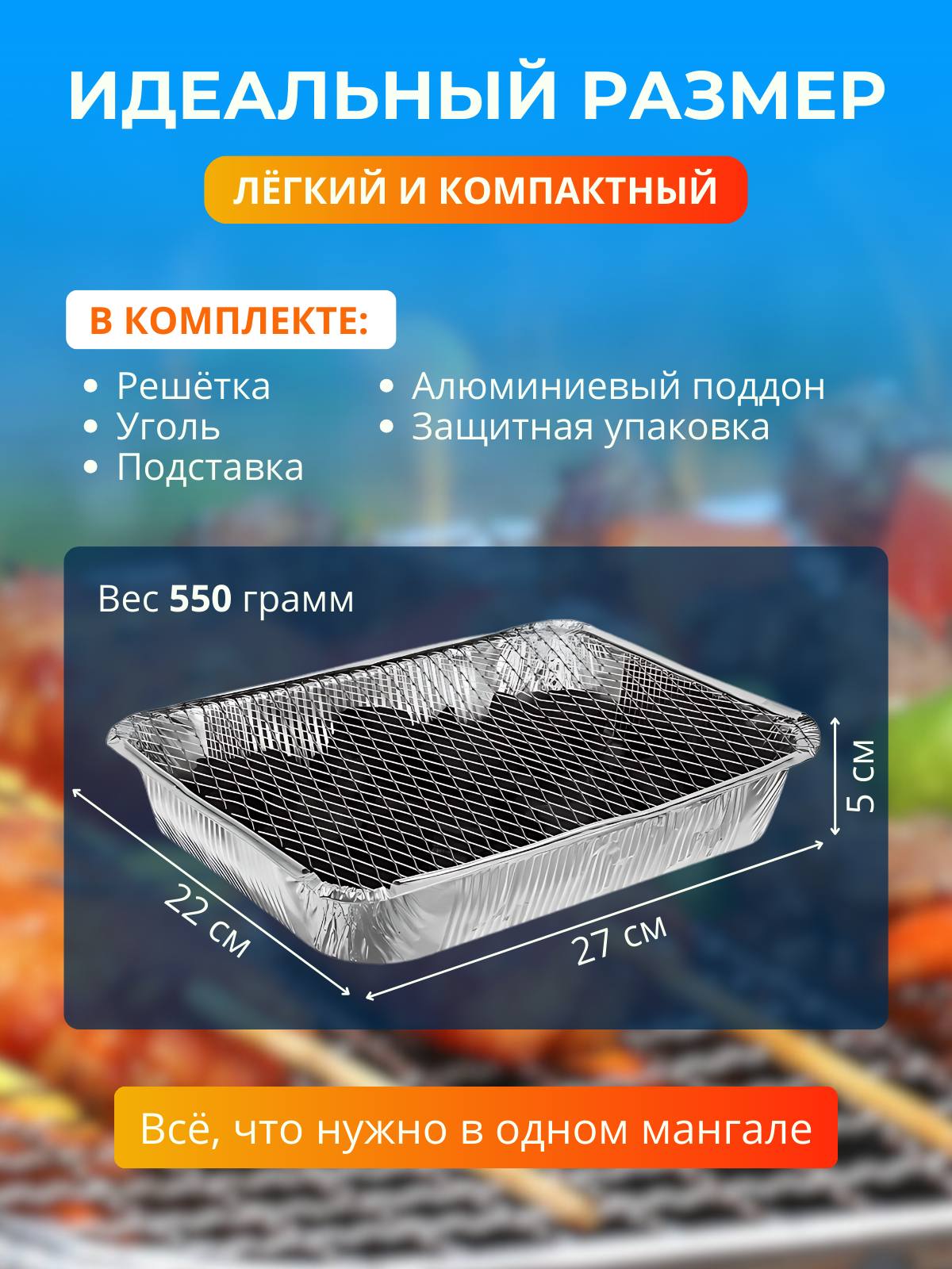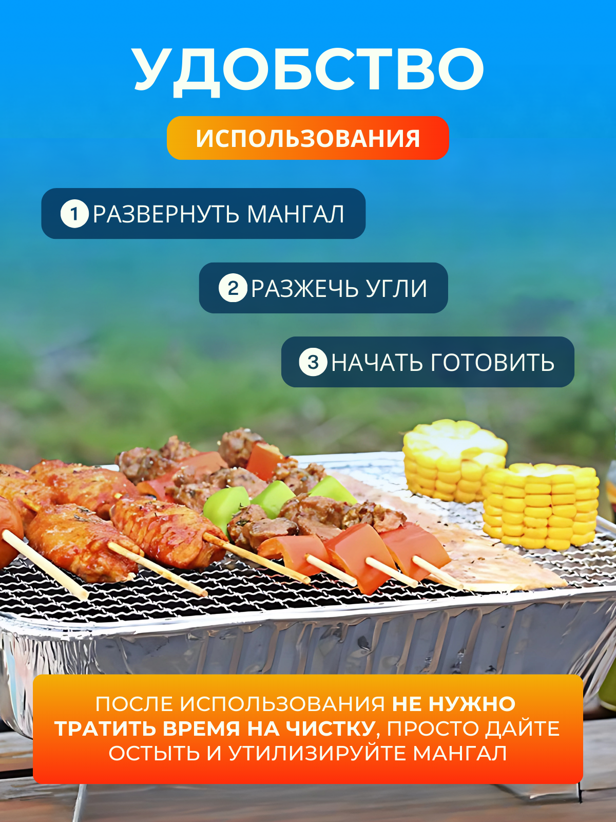 Мангал для шашлыков переносной одноразовый угольный из фольги 27 х 21 см интересное: