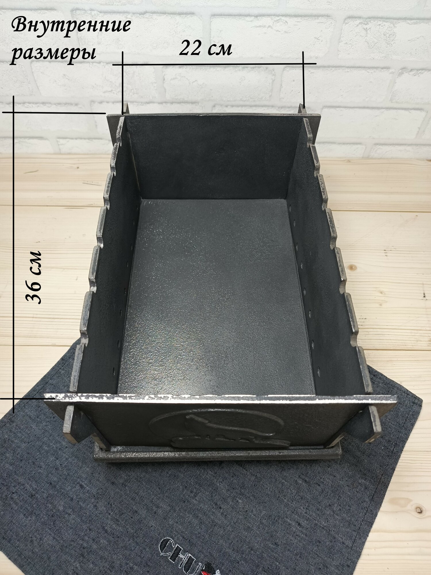 Чугунный разборный мангал, с термостойким покрытием, переносной, 39 см x 24 см x 18 см
