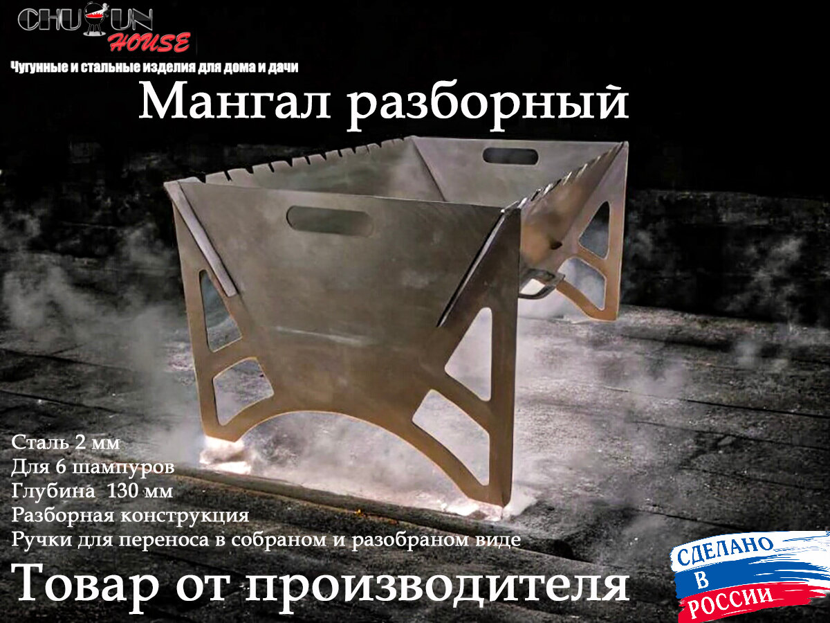 Мангал разборный, переносной, походный 48х35х25 см, толщина стенок 2 мм интересное: