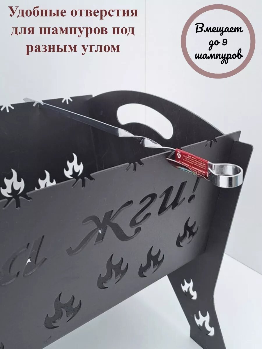 Мангал чемодан складной разборный на ножках, на 11 шампуров, переносной, черная сталь, длина 65 см