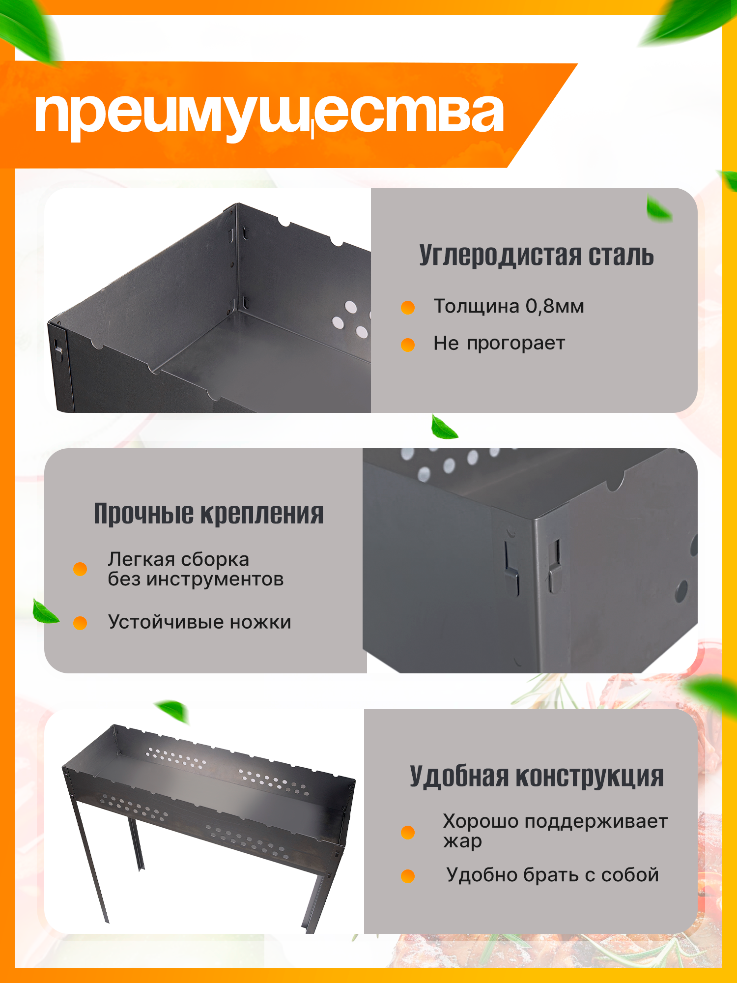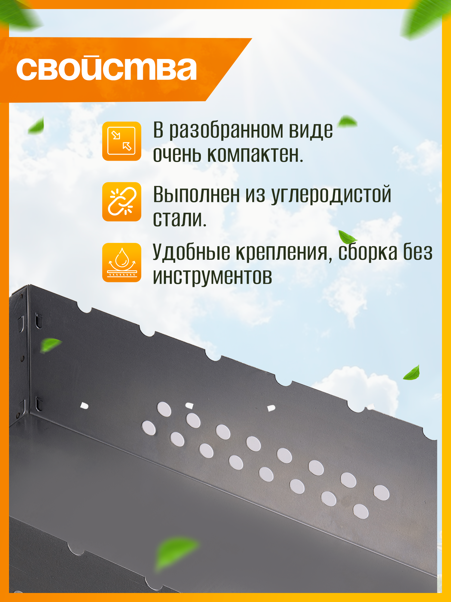 Мангал разборный складной для шашлыка и барбекю 90х90х30 см интересное: