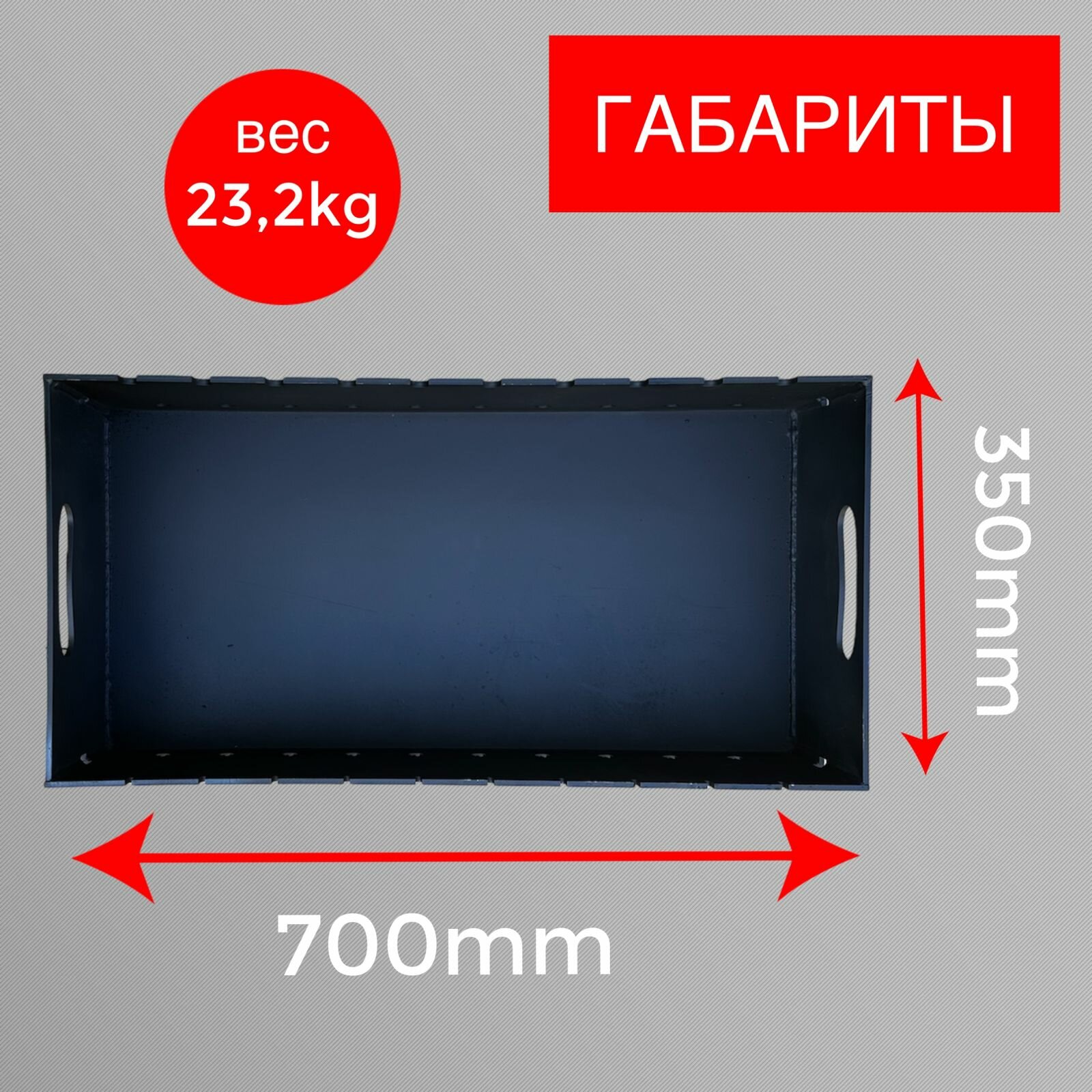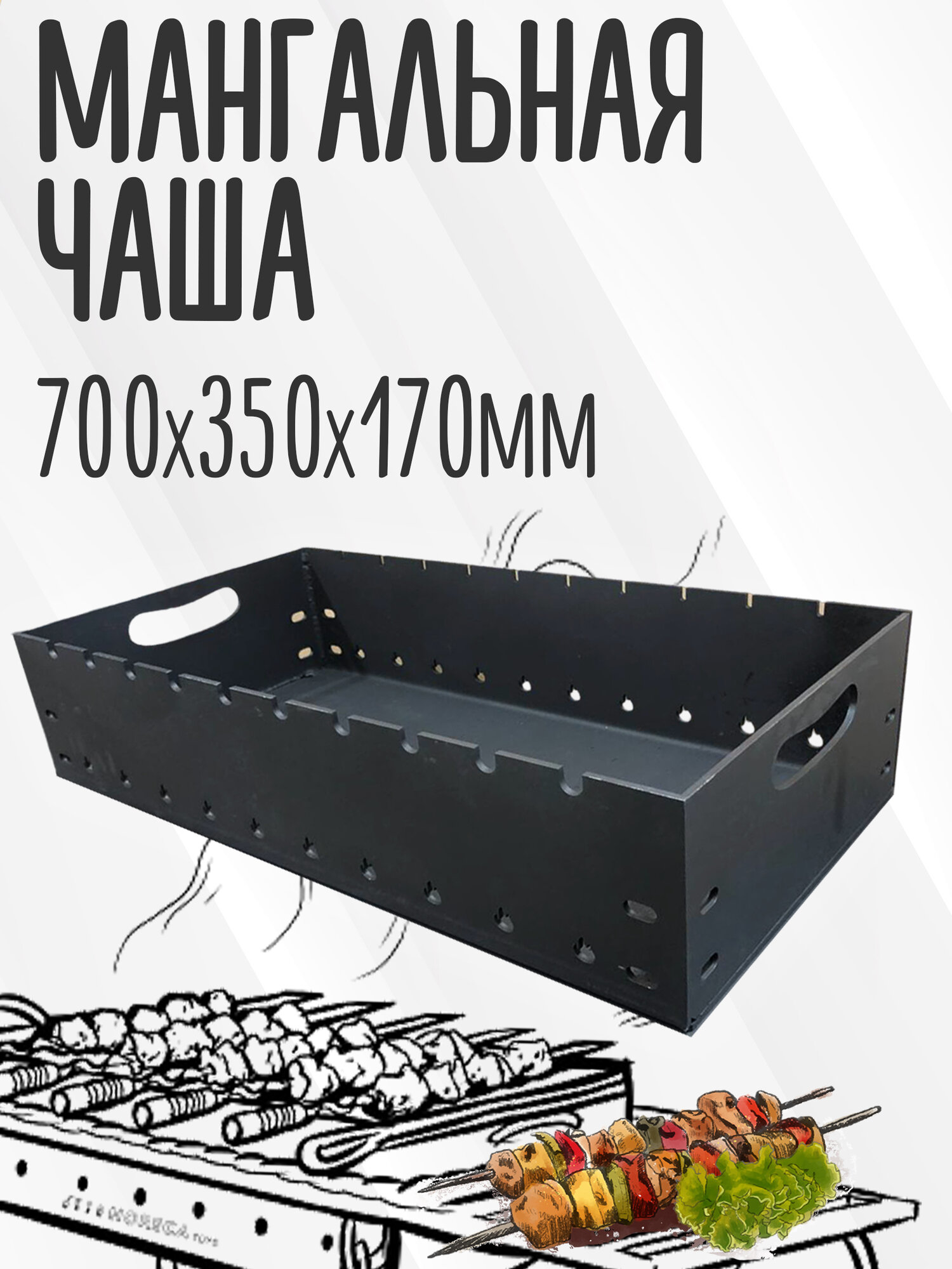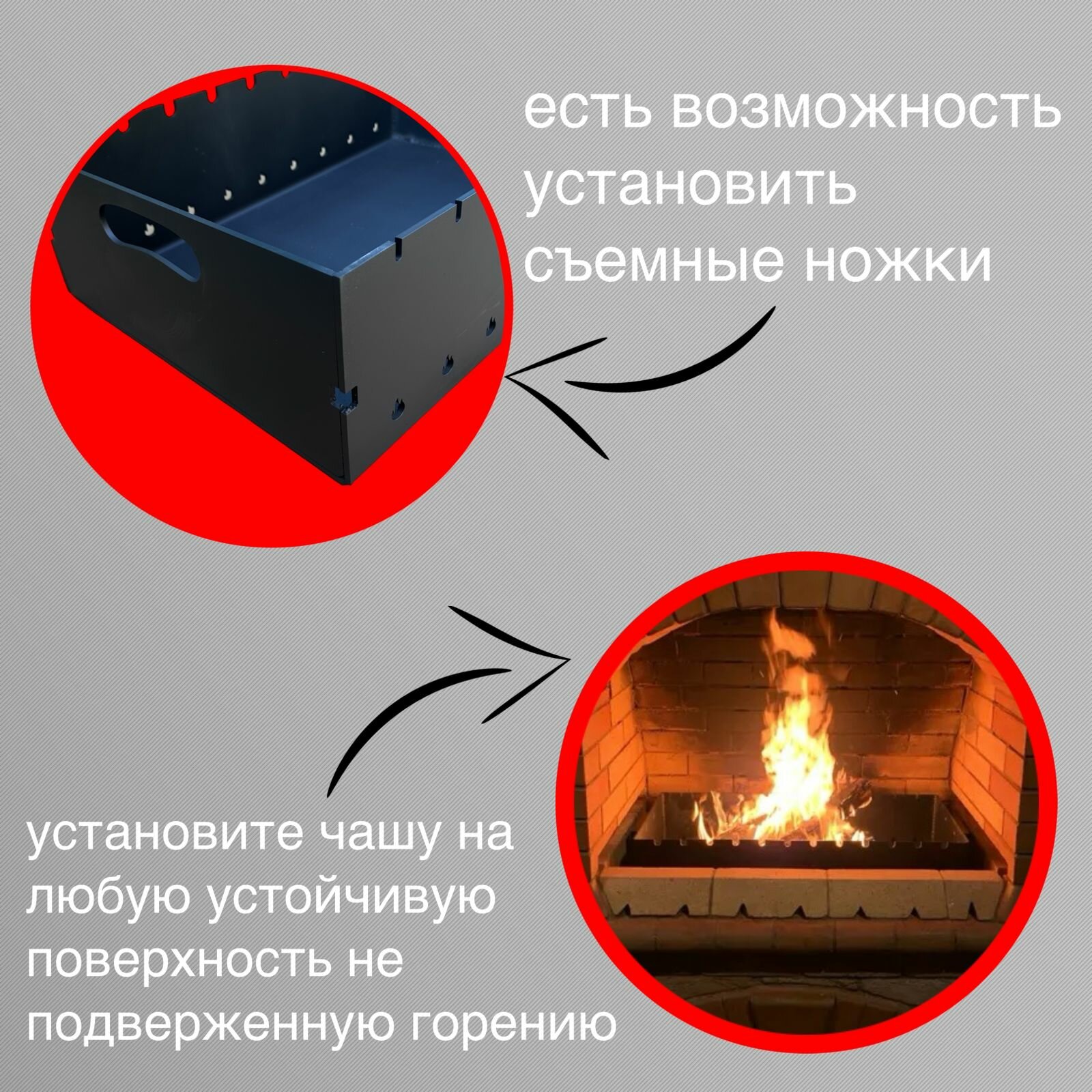 Чаша для мангала, сталь, 80 см x 30 см x 15 см, 3 мм толщина топки, 15 пазов