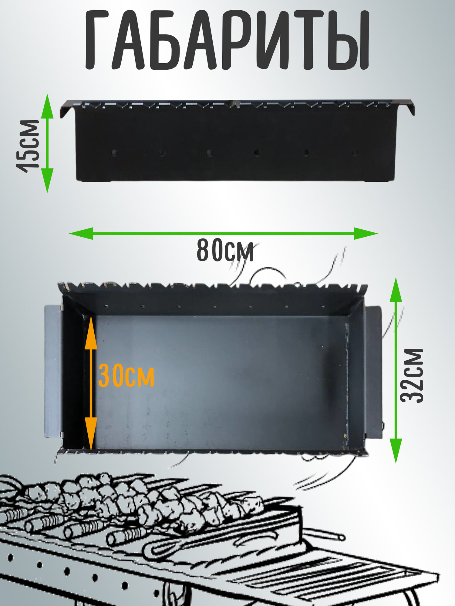 СохранитьЧаша для мангала, сталь, 80 см x 30 см x 15 см, 3 мм толщина топки, 15 пазов интересное: