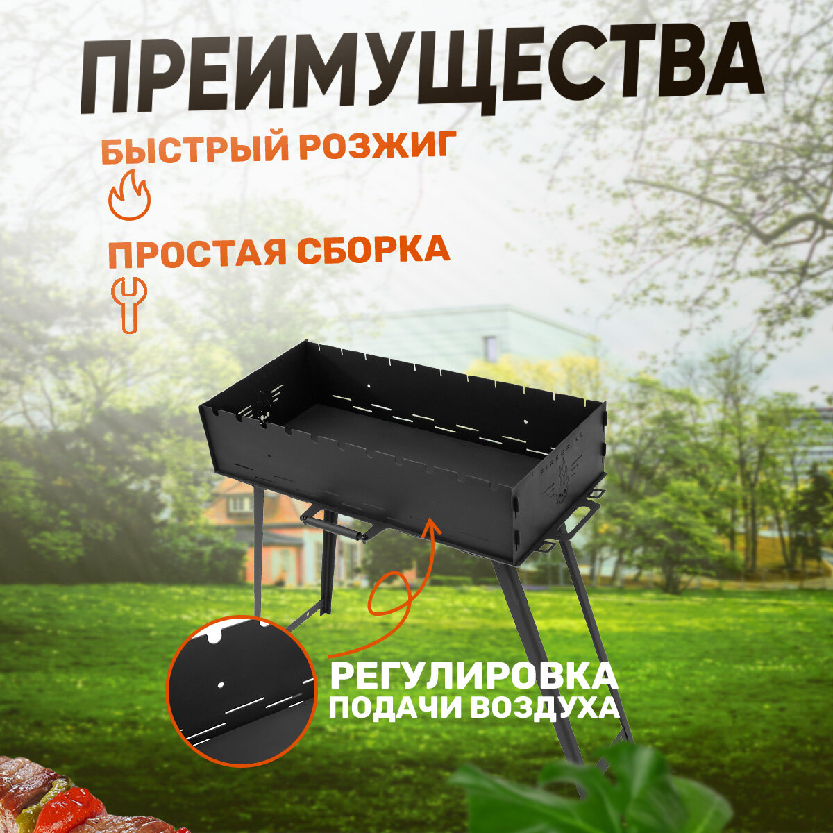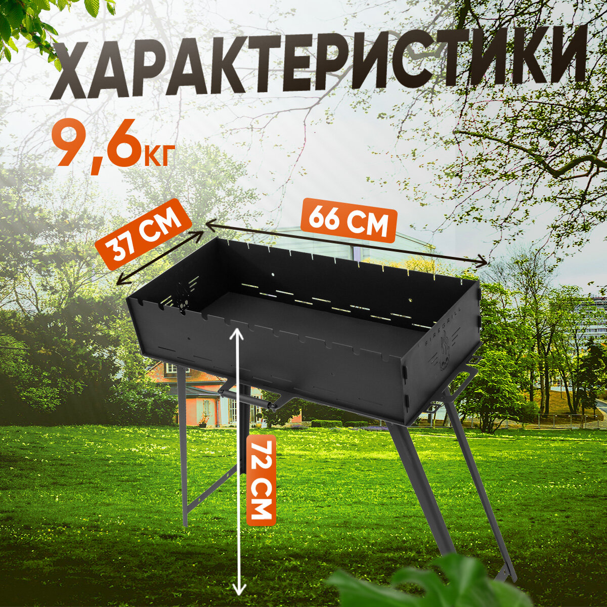 Мангал чемодан складной разборный на ножках, на 11 шампуров, переносной, черная сталь, длина 65 см интересное: