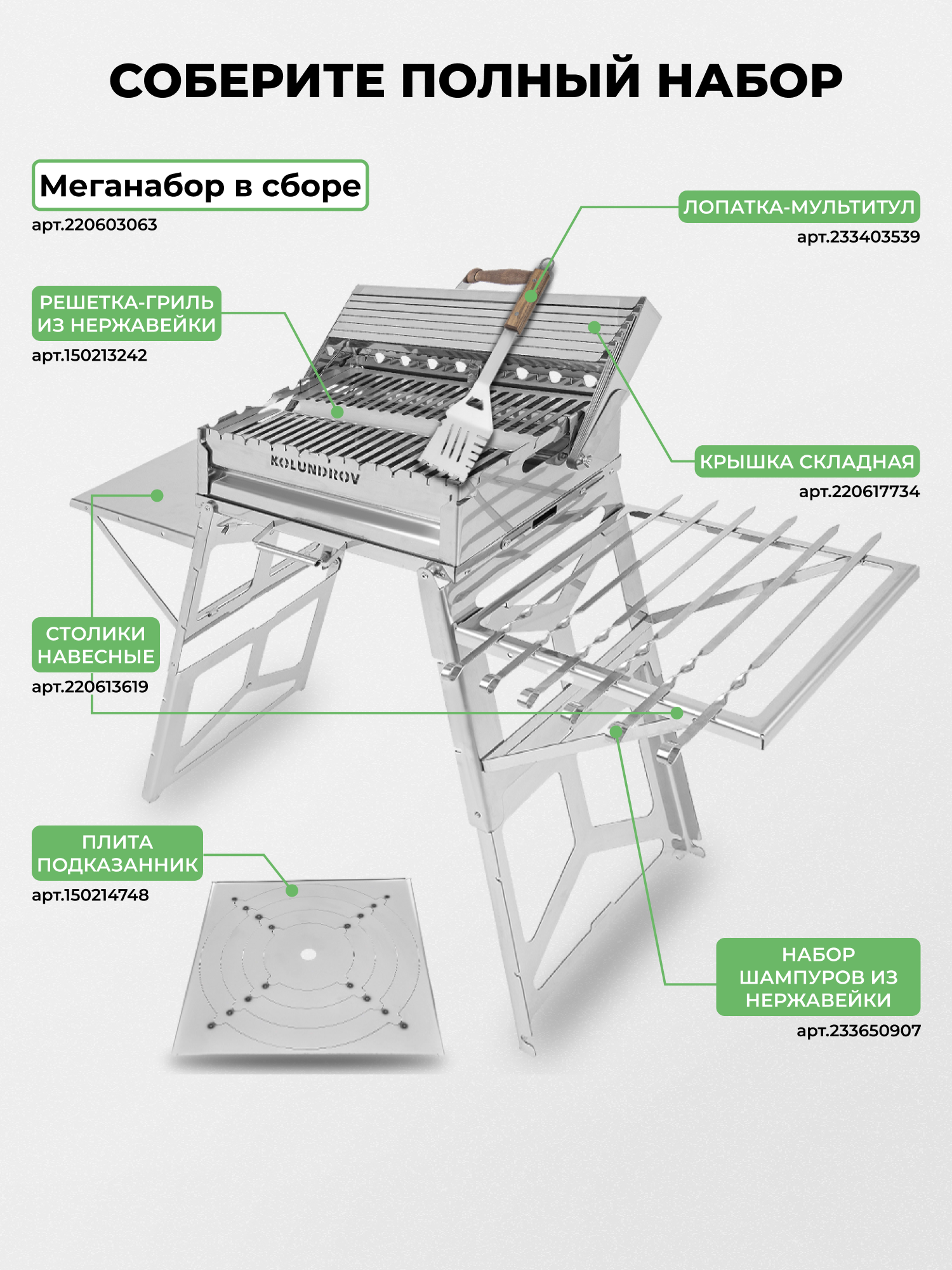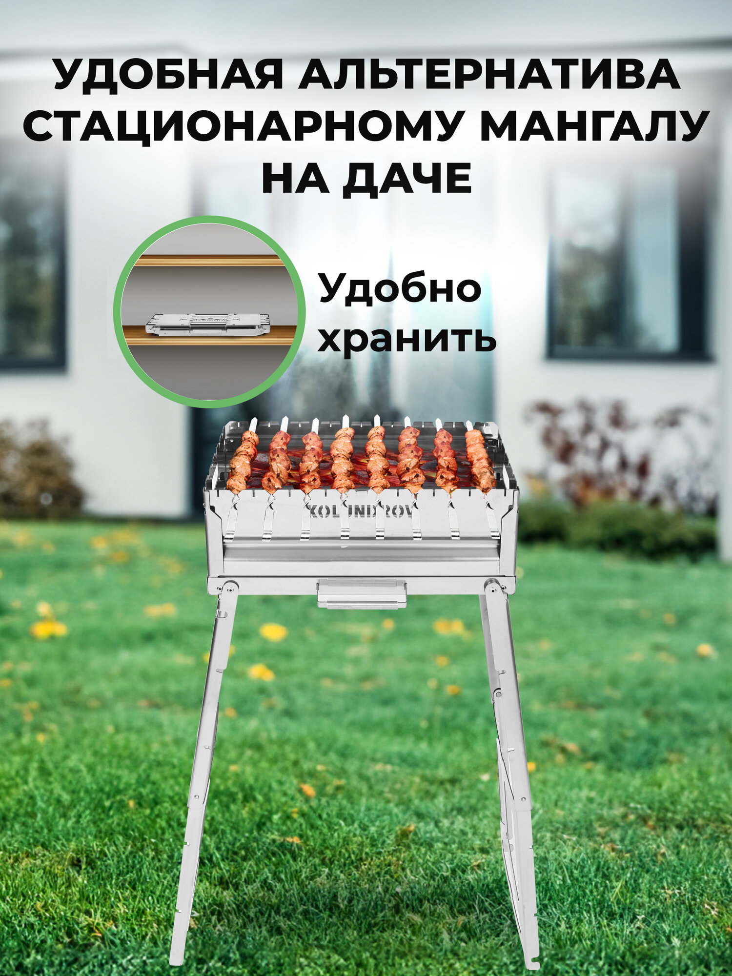 Мангал из нержавеющей стали складной KOLUNDROV Складень, с чехлом и кочергой, высокий, сборный мобильный для дачи и шашлыка интересное: