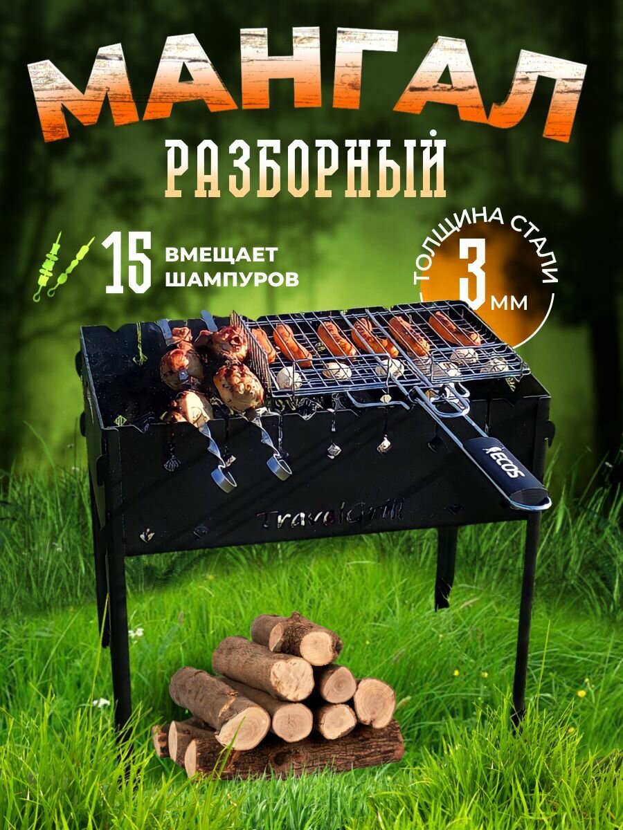 Мангал 3 мм сталь, некрашеный, разборный, жаропрочный, складной, компактный TRAVEL GRILL интересное: