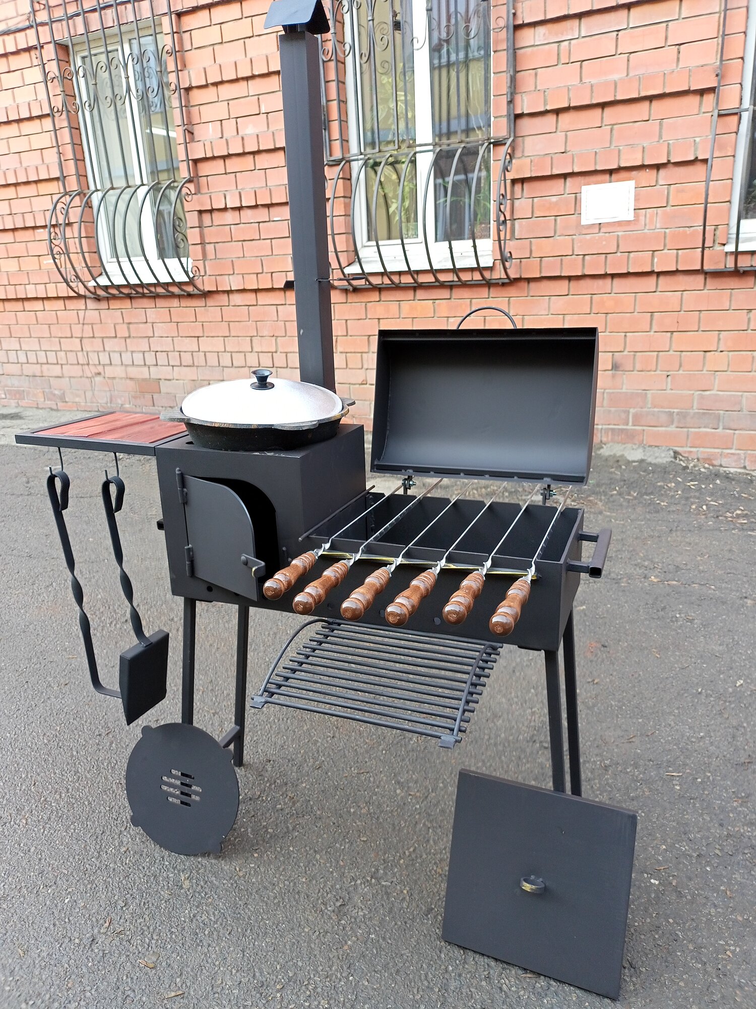 Усиленный мангал 5мм горячекатаная сталь. Барбекю с крышкой. Гриль с полочкой и трубой. Мангал с местом под казан. интересное: