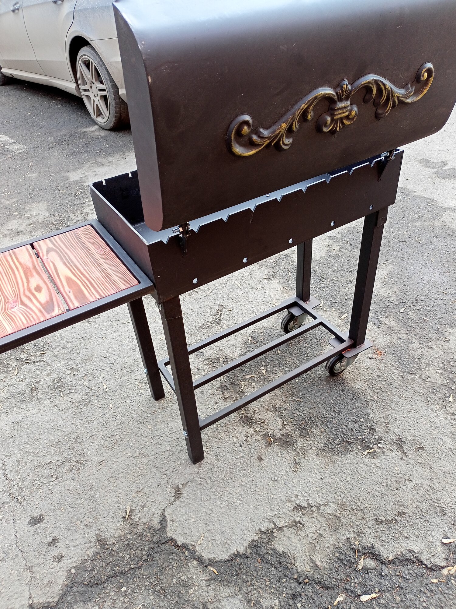 Мангал 5мм горячекатаная сталь. Барбекю с крышкой. Гриль с термометром и полочкой на колёсах. Мангал с поддувалом мощный