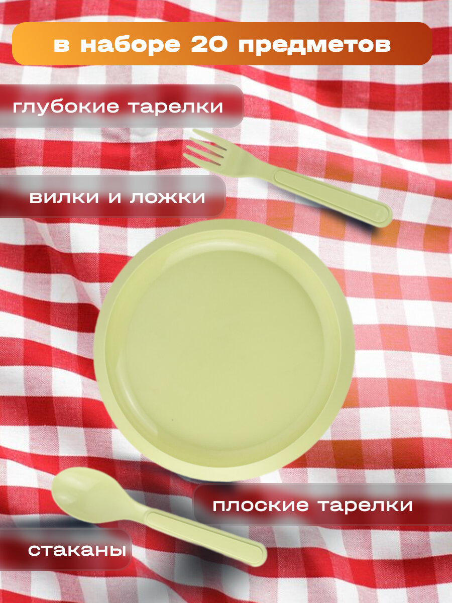 Набор для пикника 20 предметов на 4 персоны интересное: