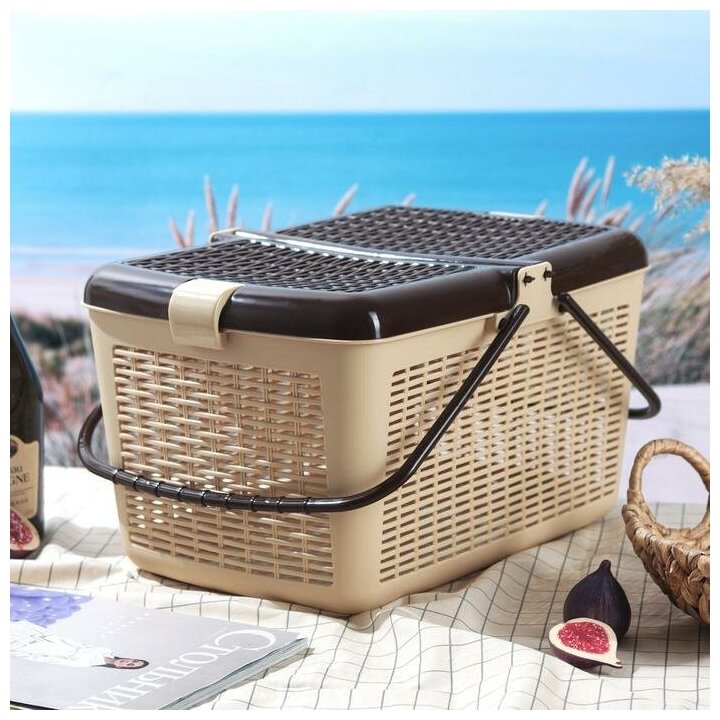 Корзина для пикника Альтернатива, 45×30×24 см, с ручками, пластик, светло-коричневая интересное: