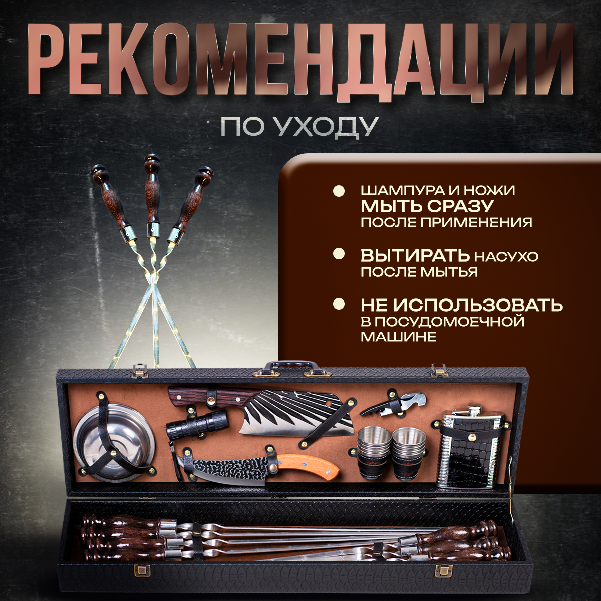 Шашлычный набор подарочный в кейсе № 22 от GRILLS FACTORY. На 8 персон, с синим велюром внутри