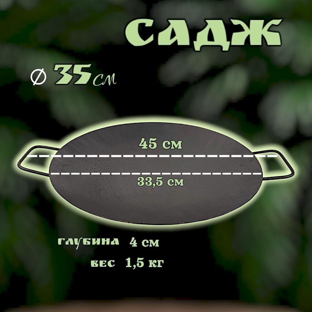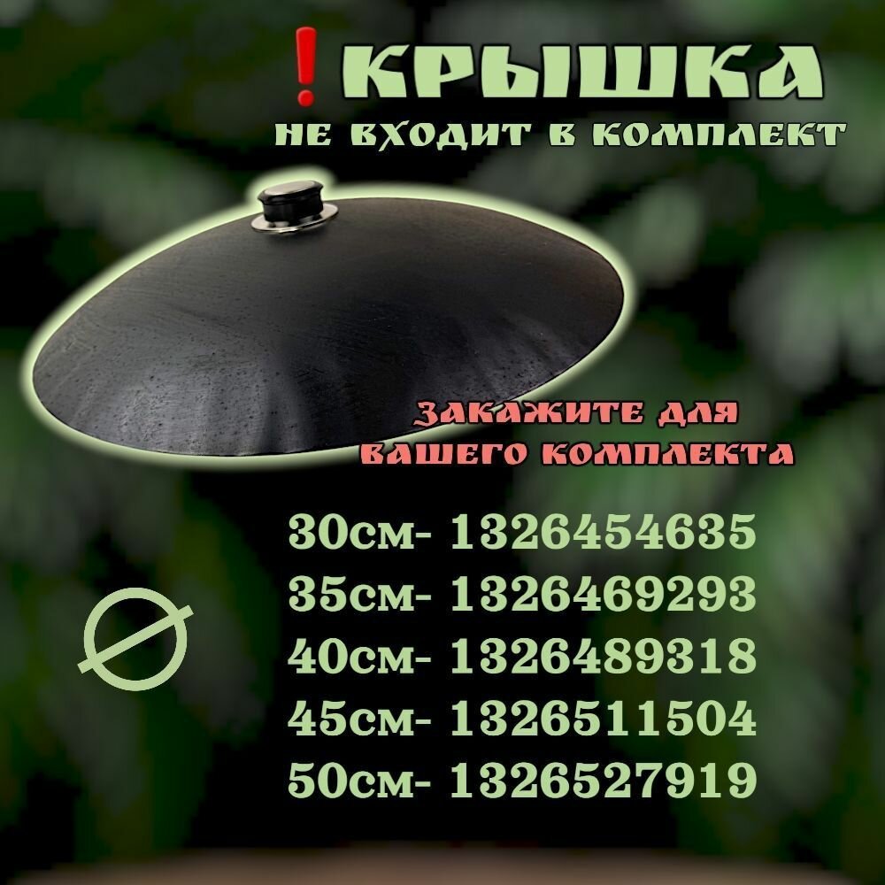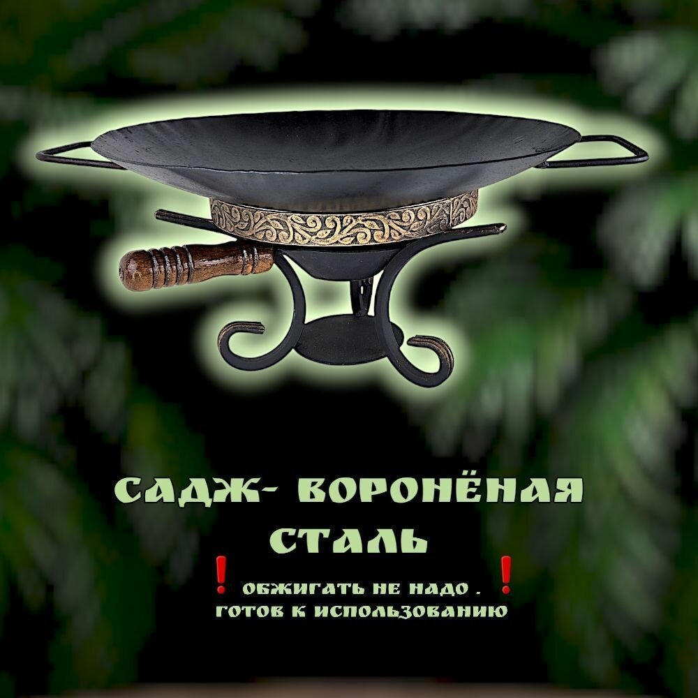 Комплект посуды для пикника и отдыха/садж 35см воронёный+подставка с черпаком/Казаны РФ интересное:
