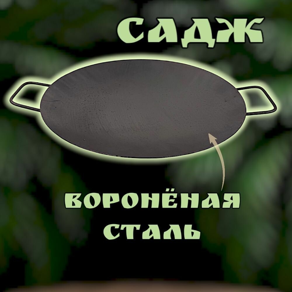 Комплект посуды для пикника и отдыха/садж 45см воронёный+подставка с черпаком/Казаны РФ