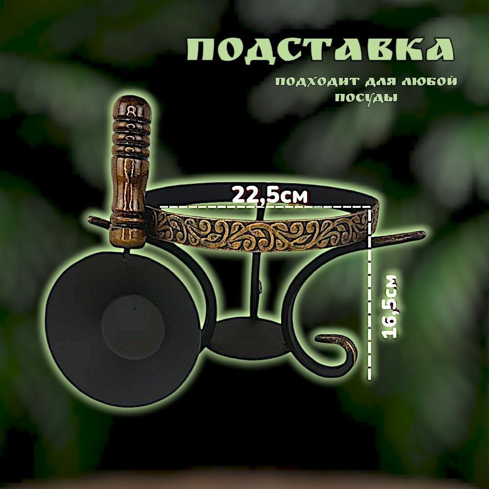 Комплект посуды для пикника и отдыха/садж 35см воронёный+подставка с черпаком/Казаны РФ