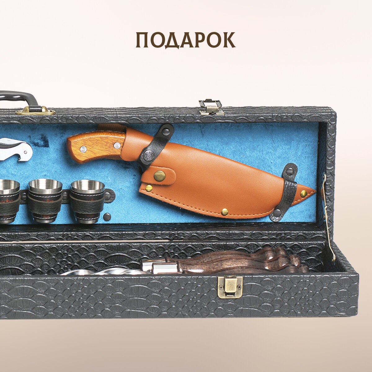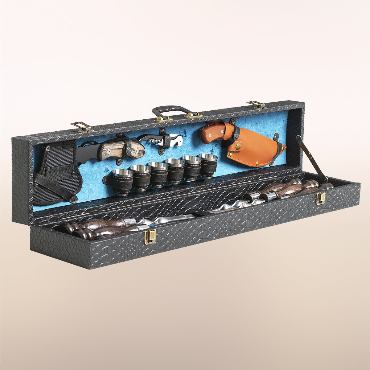 Шашлычный набор подарочный в кейсе № 29 от GRILLS FACTORY. На 6 персон, с коричневым велюром внутри