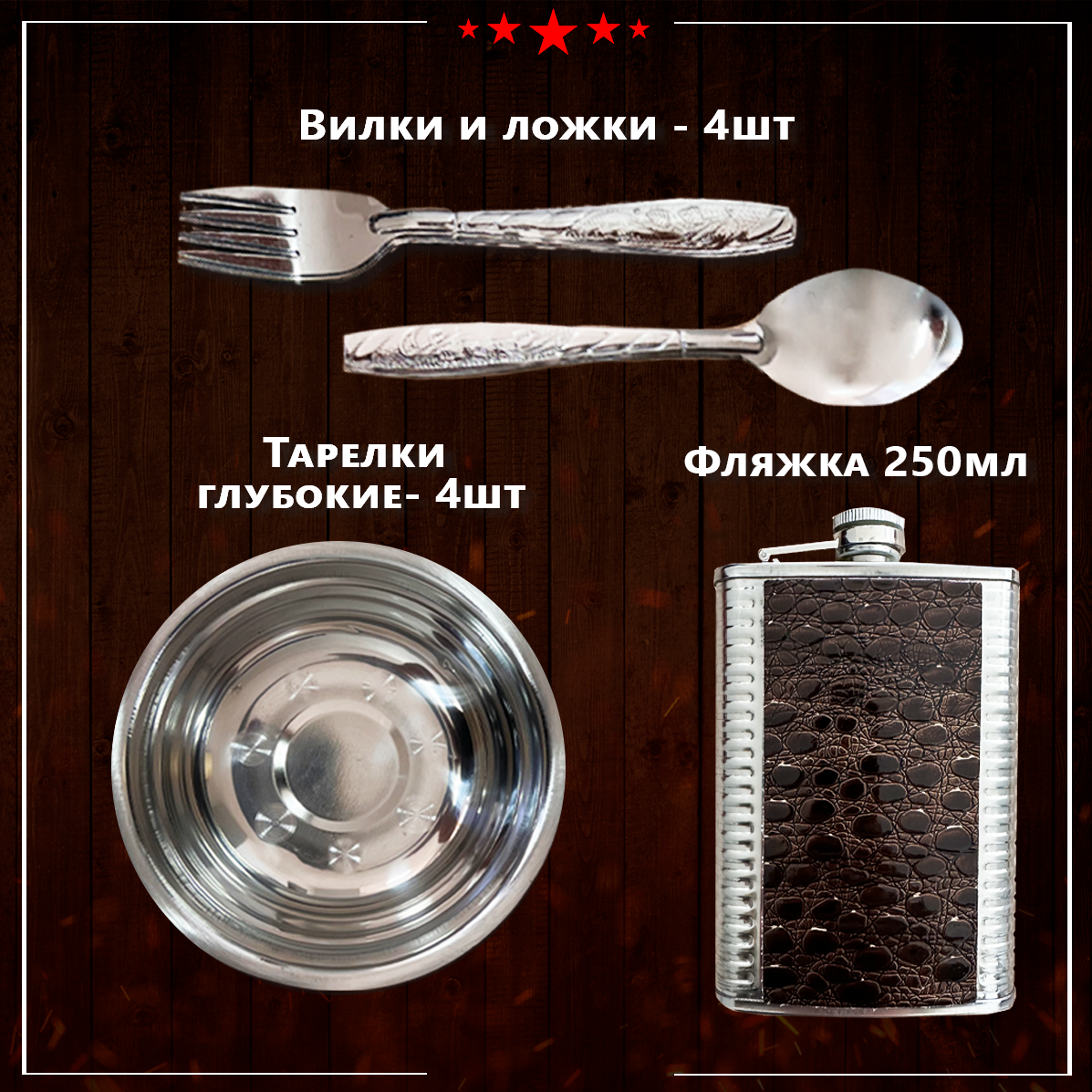 Набор для пикника подарочный в кейсе № 24 от GRILLS FACTORY. На 4 персоны, с коричневым велюром внутри
