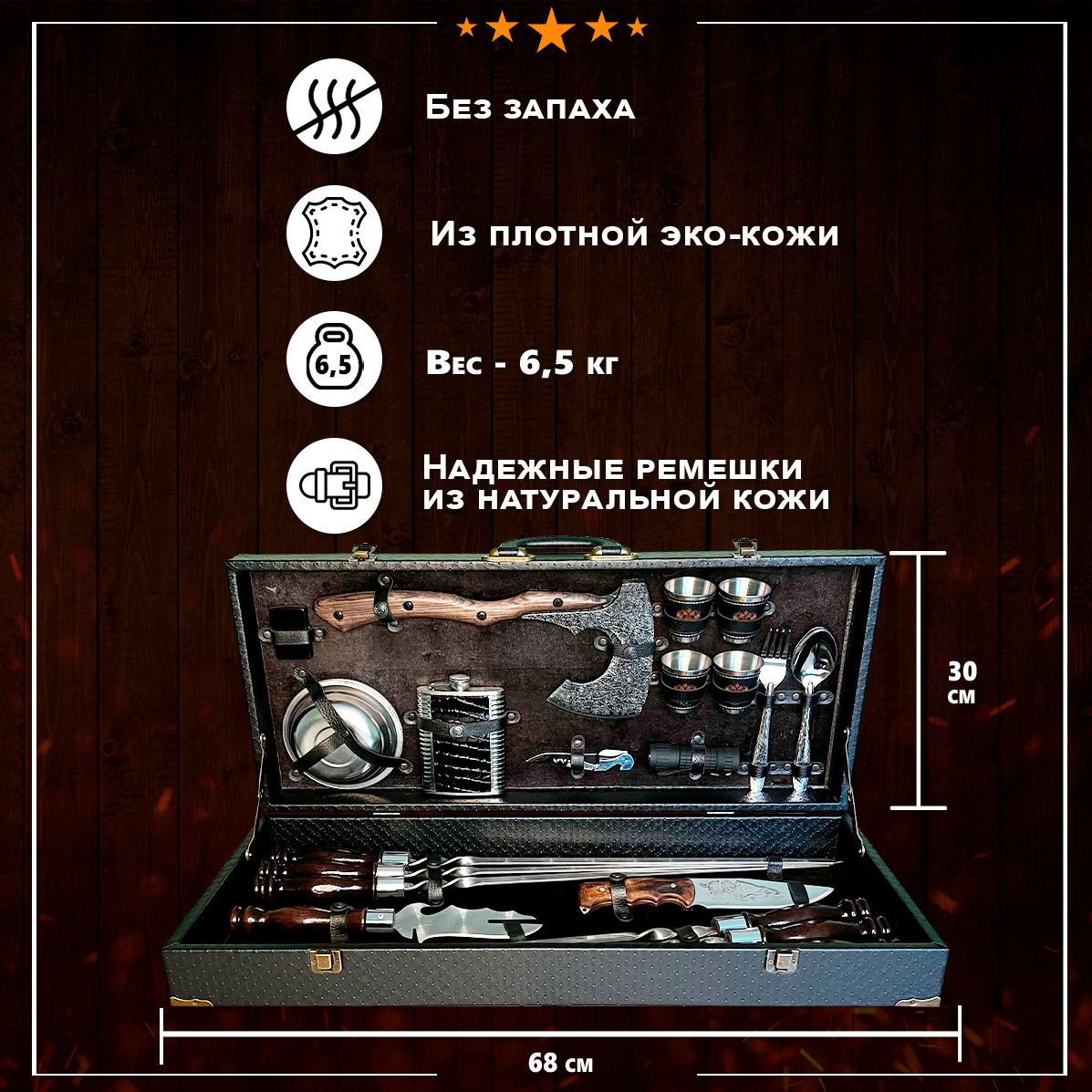 Набор для пикника подарочный в кейсе № 24 от GRILLS FACTORY. На 4 персоны, с коричневым велюром внутри интересное: