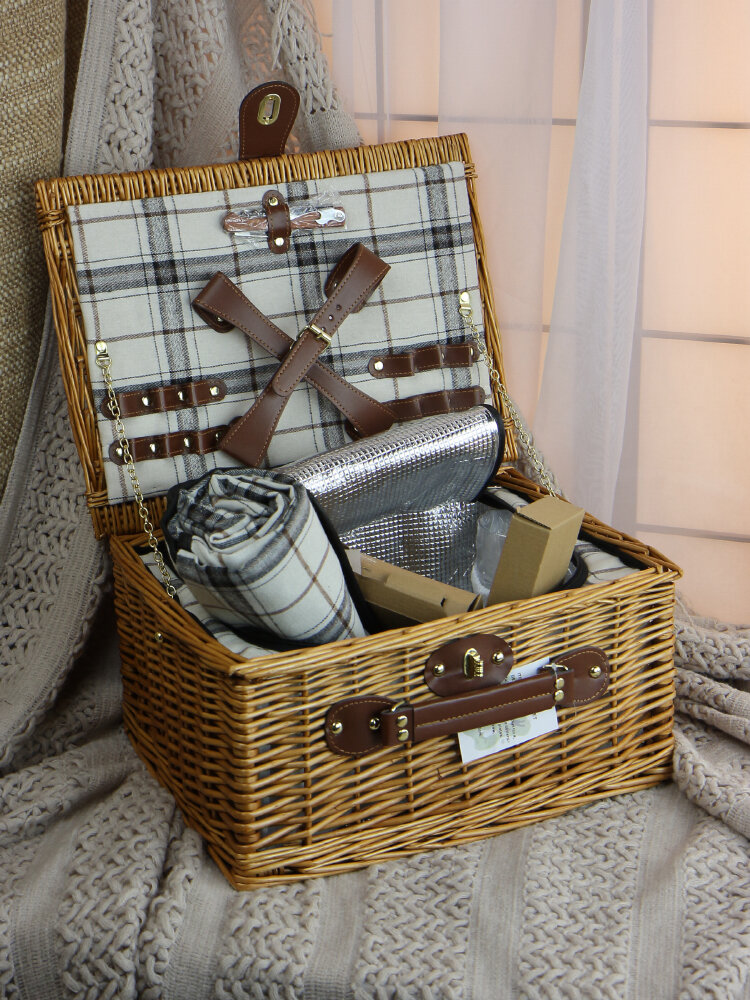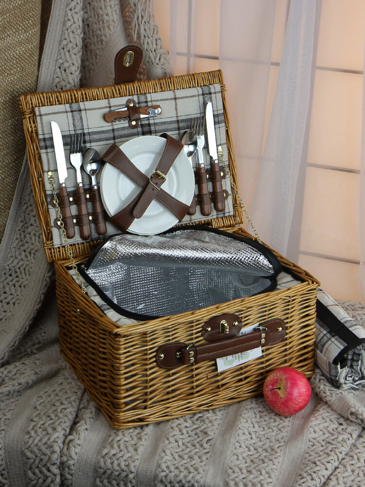Набор для пикников Holiday Basket, с термосумкой, 4 тарелки, 4 бокала, штопор, плед интересное: