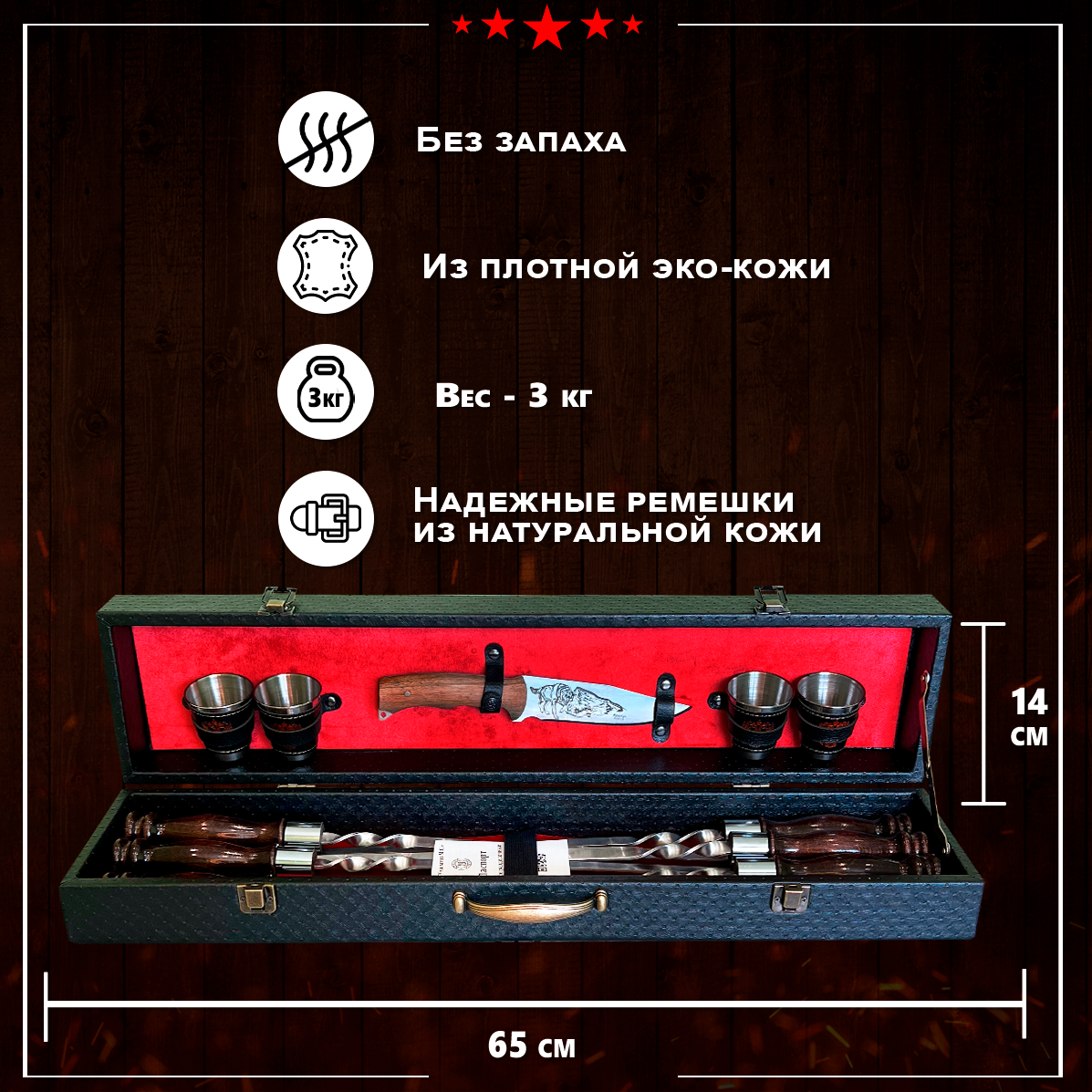 Набор для шашлыка подарочный в кейсе № 25 с кизлярским ножом от GRILLS FACTORY. На 4 персоны, с красным велюром внутри интересное: