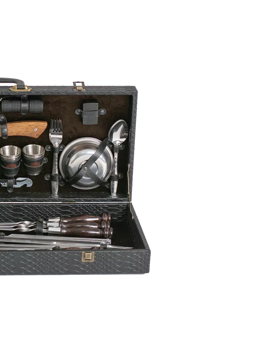 Набор для пикника подарочный в кейсе № 26 от GRILLS FACTORY. На 6 персон, с красным велюром внутри