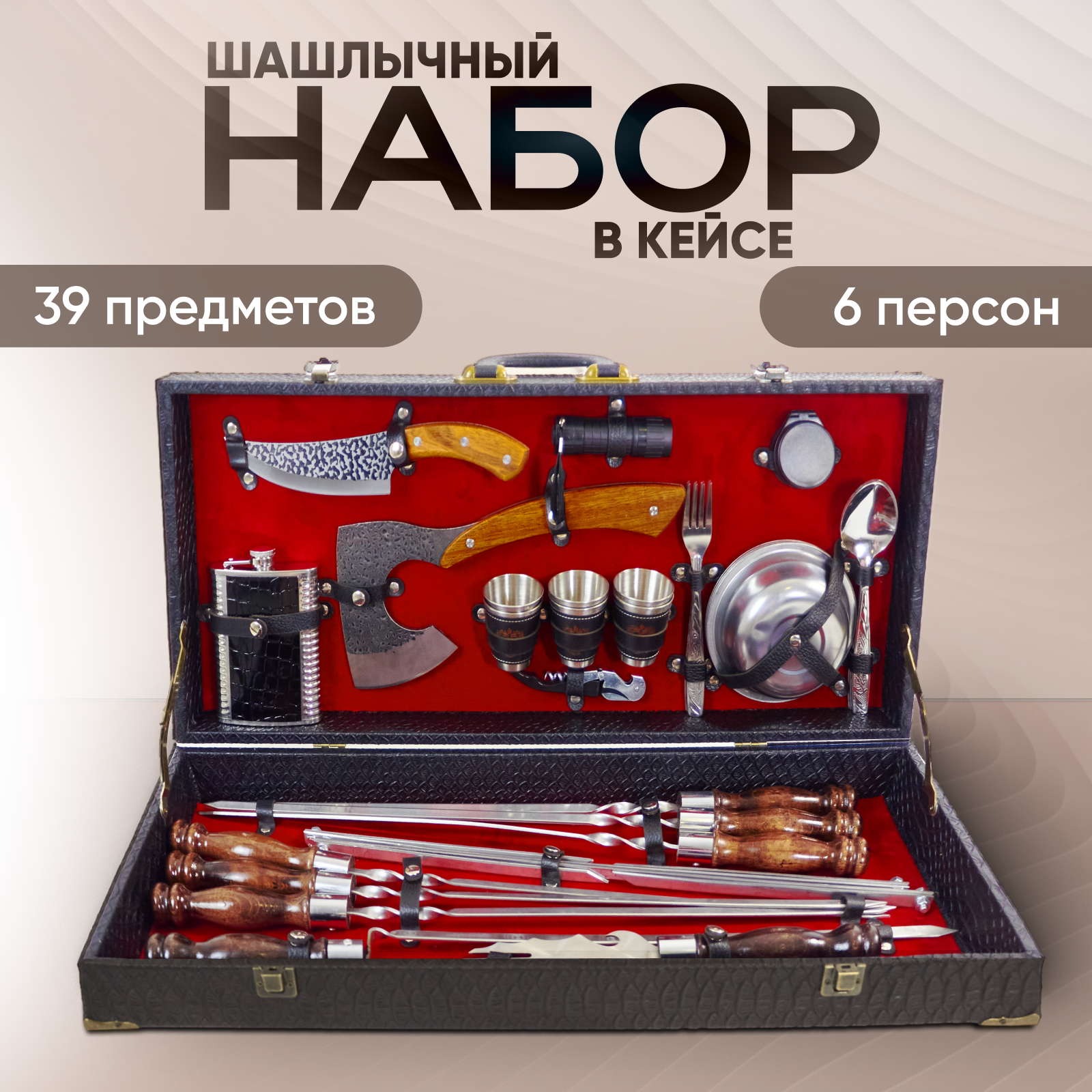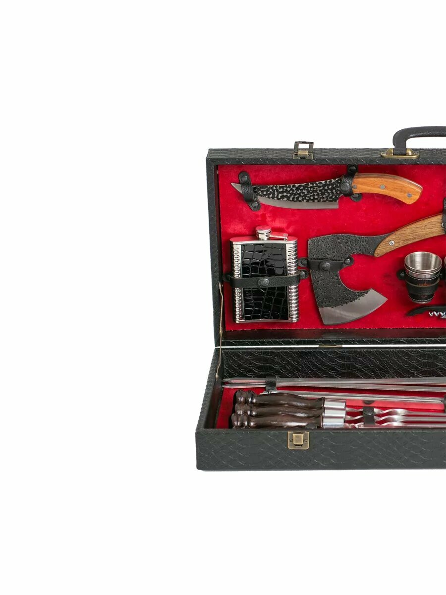 Набор для пикника подарочный в кейсе № 26 от GRILLS FACTORY. На 6 персон, с красным велюром внутри интересное: