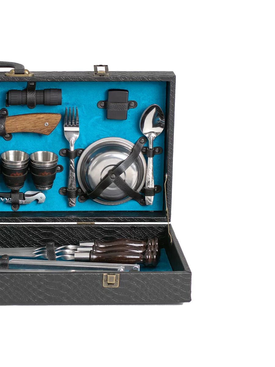 Набор для пикника подарочный в кейсе № 26 от GRILLS FACTORY. На 6 персон, с красным велюром внутри