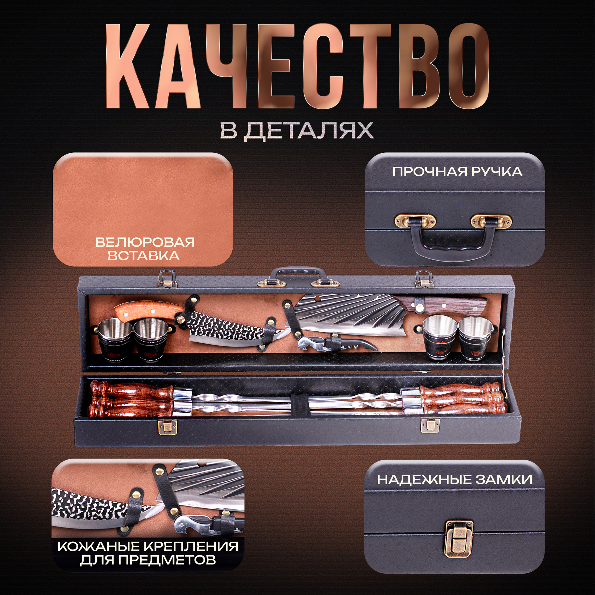 СохранитьНабор для шашлыка подарочный в кейсе Эстет от GRILLS FACTORY. На 4 персоны, с коричневым велюром внутри интересное: