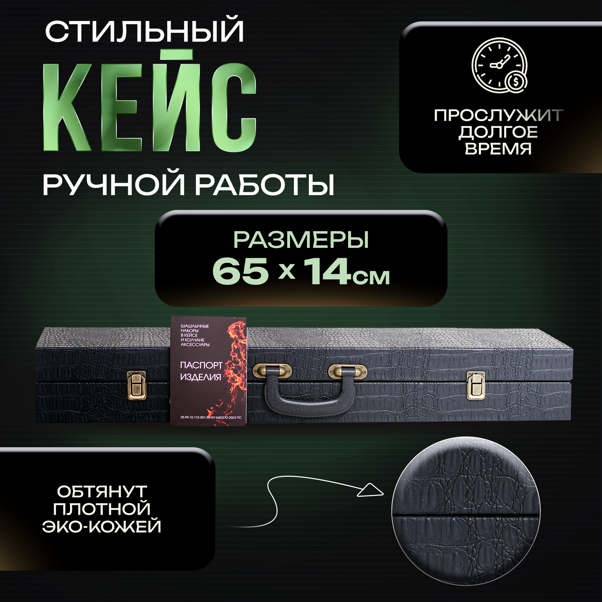 Купить Шашлычный набор подарочный в кейсе Эстет от GRILLS FACTORY. На 4 персоны, с зеленым велюром внутри
