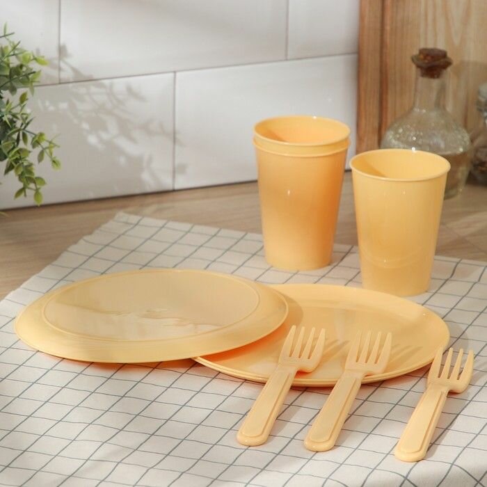 Набор для пикника Idiland посуда 9 предметов, цвет бледно-желтый, пластик интересное: