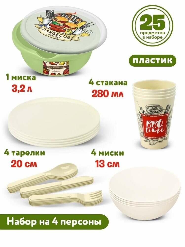 Набор для пикника ND Play Микс 1, с декором, 25 предметов, на 4 персоны (221135590/00) интересное: