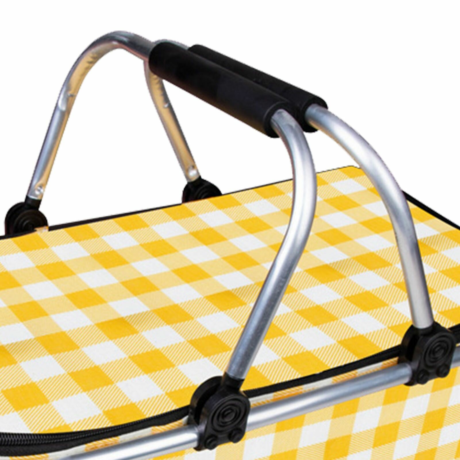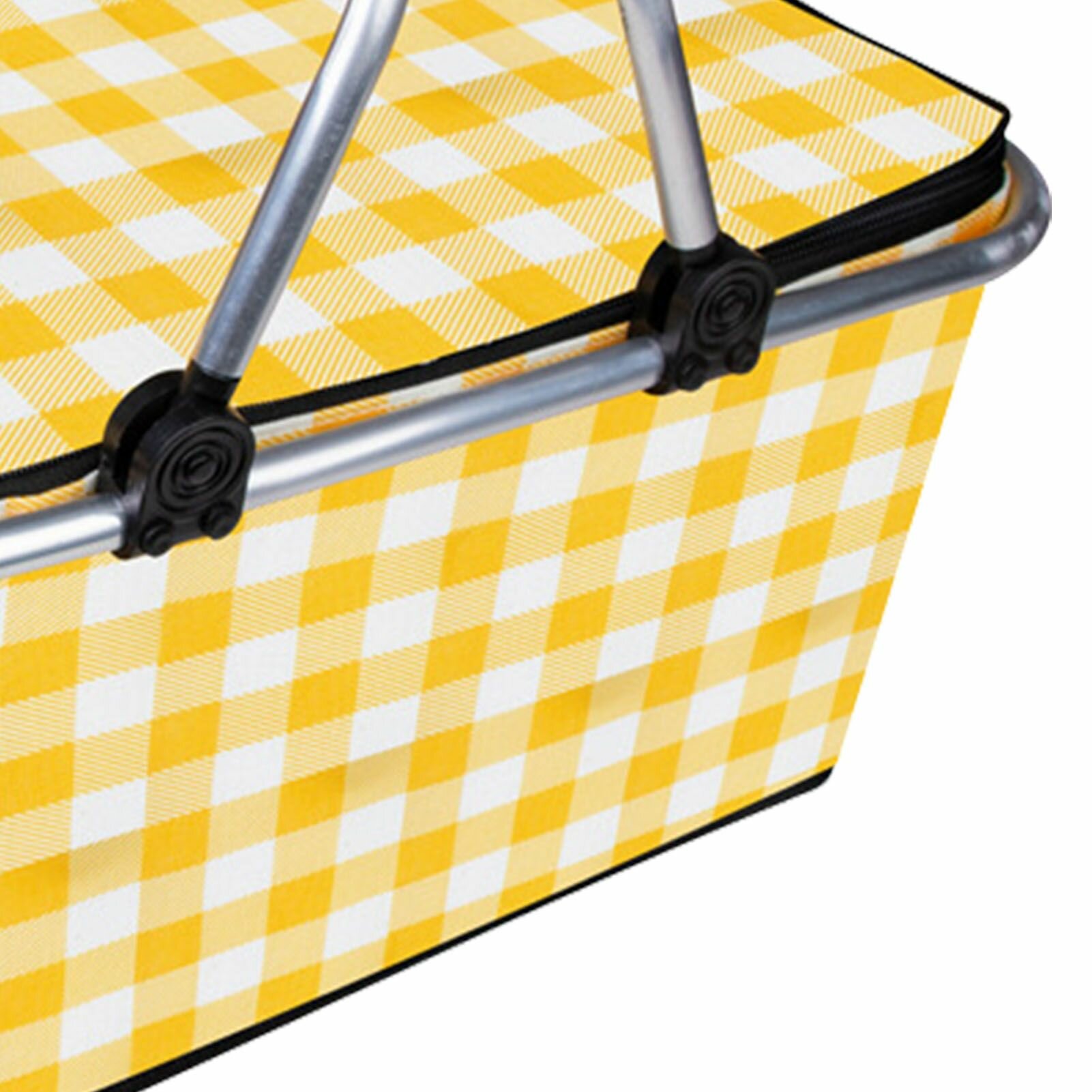 Купить Корзина для пикника Складная изолированная корзина для хранения из ткани Оксфорд с клетчатым узором для пикника Кемпинг Желтая обычная