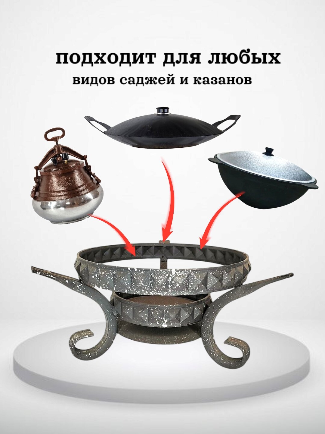 Подставка под садж+садж+крышка+вилка для снятия мяса. Казаны РФ интересное: