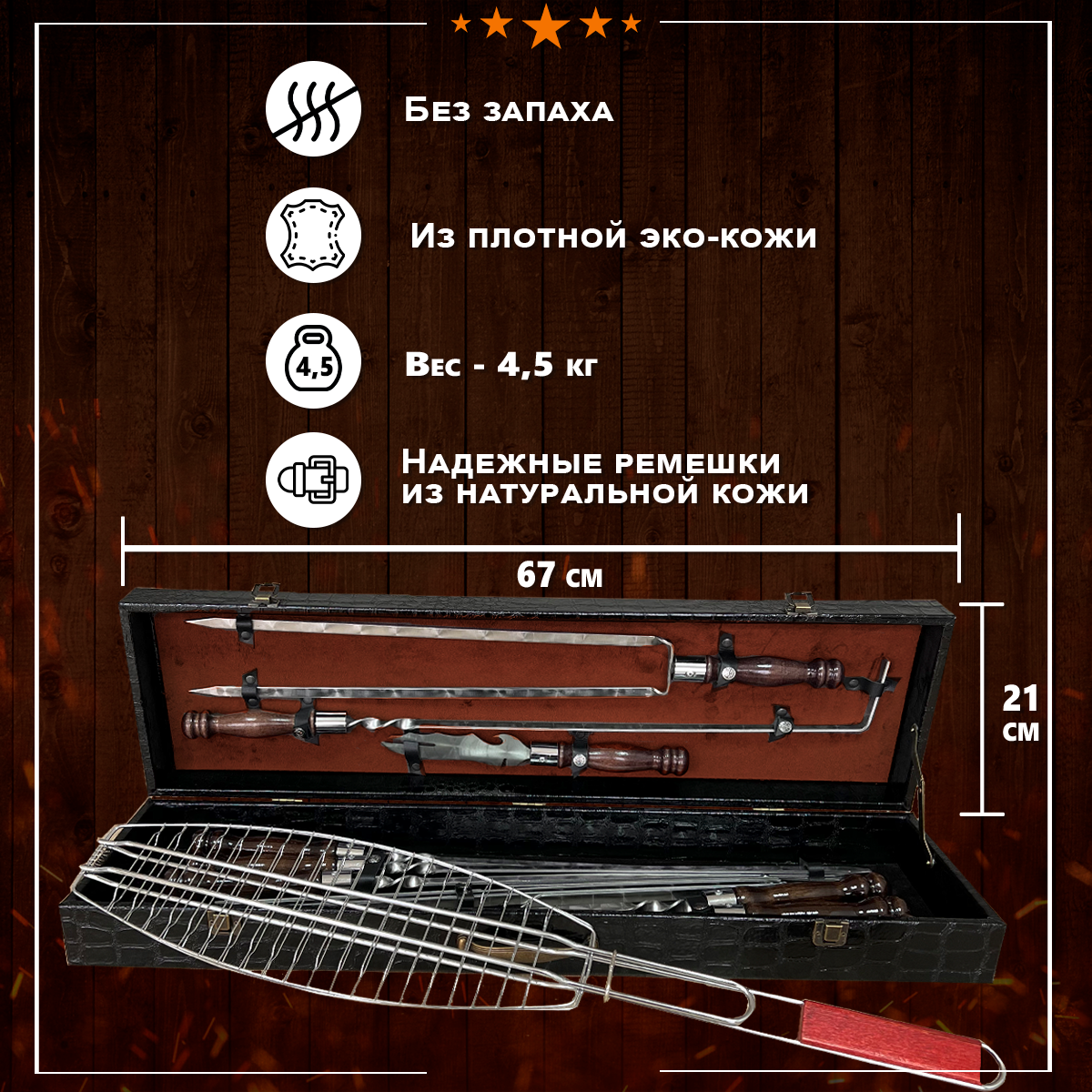 Шашлычный набор подарочный в кейсе № 13 плюс от GRILLS FACTORY. На 6 персон, с коричневым велюром внутри интересное: