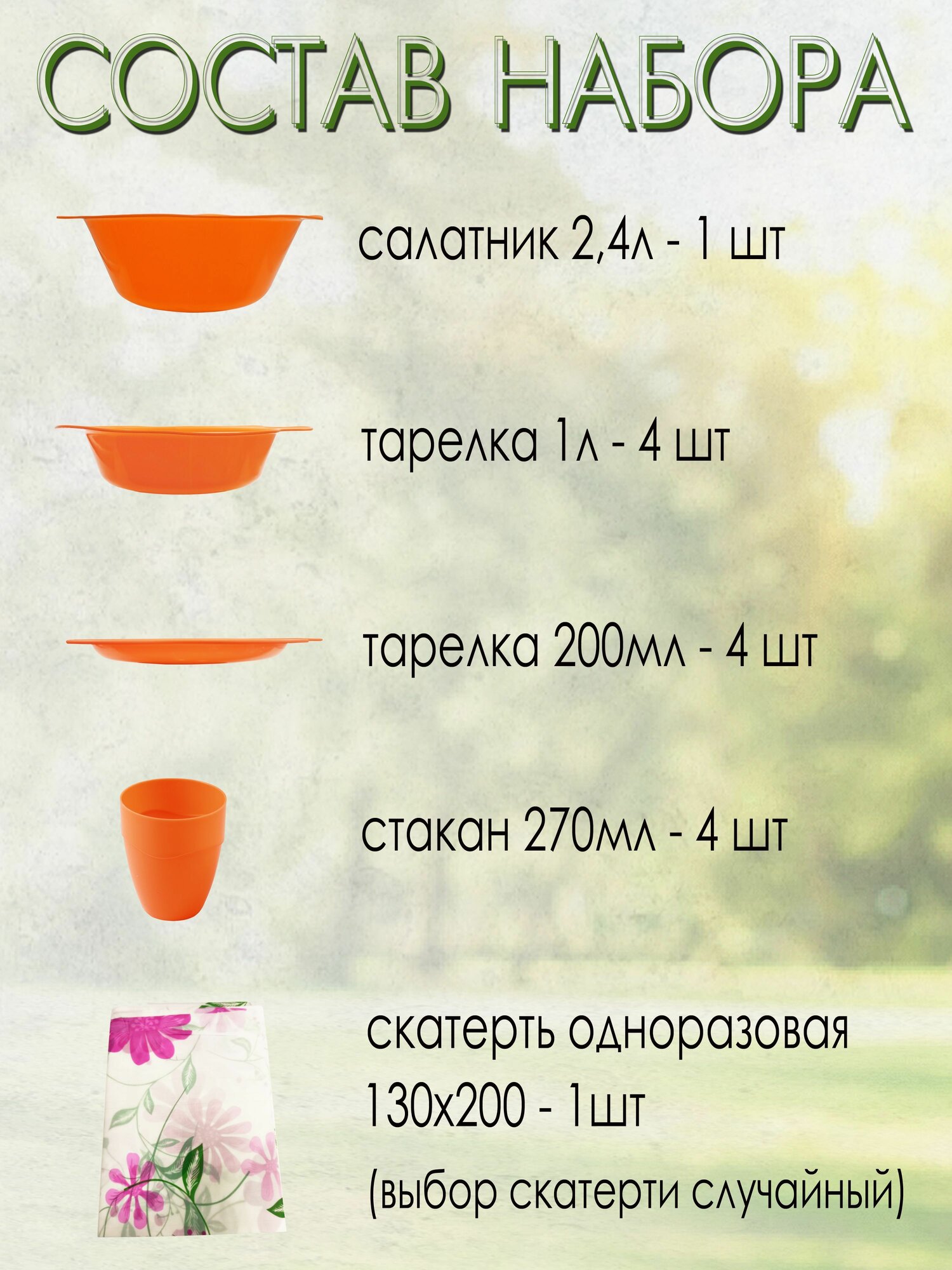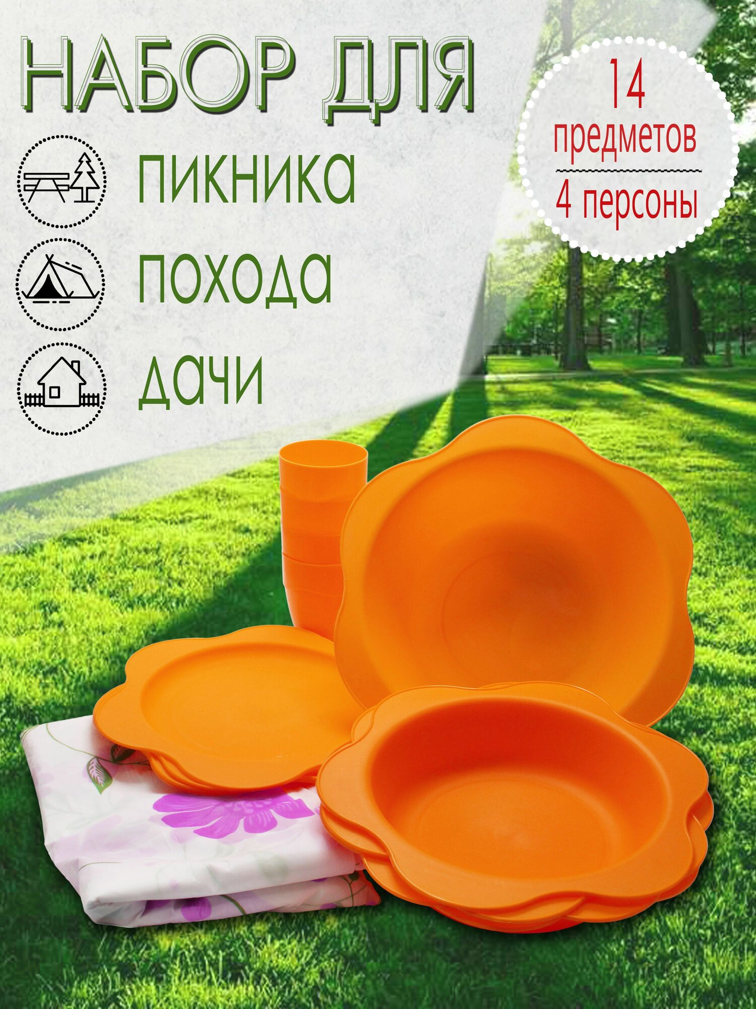 Набор для пикника, 4 персоны, 14 предметов (оранжевый) НПО4С интересное: