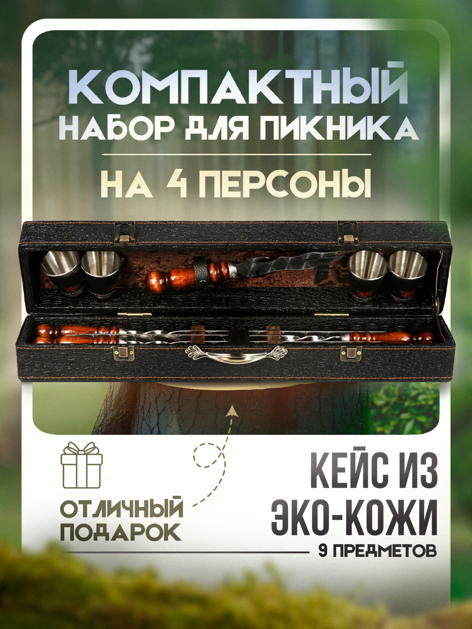 Шашлычный набор на подарок в кейсе для пикника, шампуры от производителя, шампур с деревянной ручкой интересное: