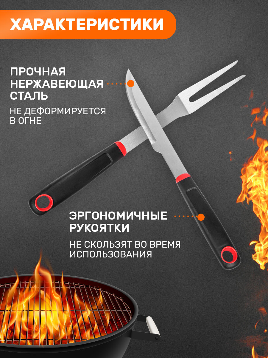 Набор для гриля и барбекю СОКОЛ, нержавеющая сталь, с термопластичной резиной
