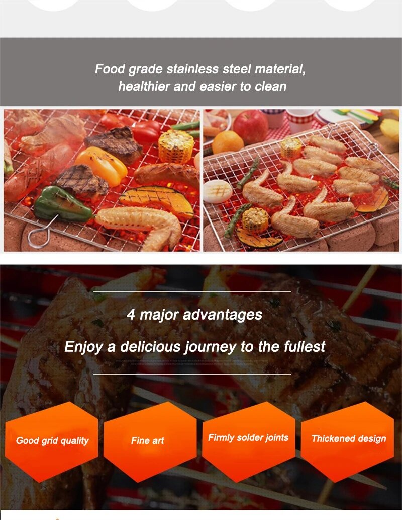 CHANSUNRUN Антипригарная сетка для барбекю из нержавеющей стали, A--40x25cm