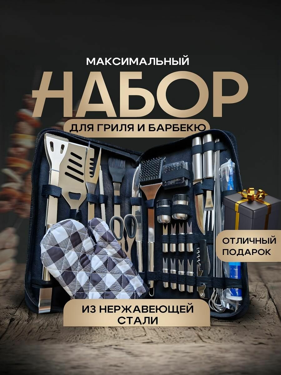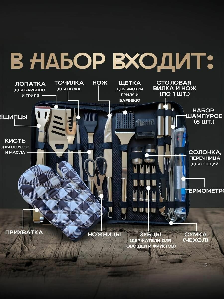 Набор для барбекю и гриля подарочный мужской в кейсе 30 предметов . Набор для пикника /шашлыка / мангала . интересное: