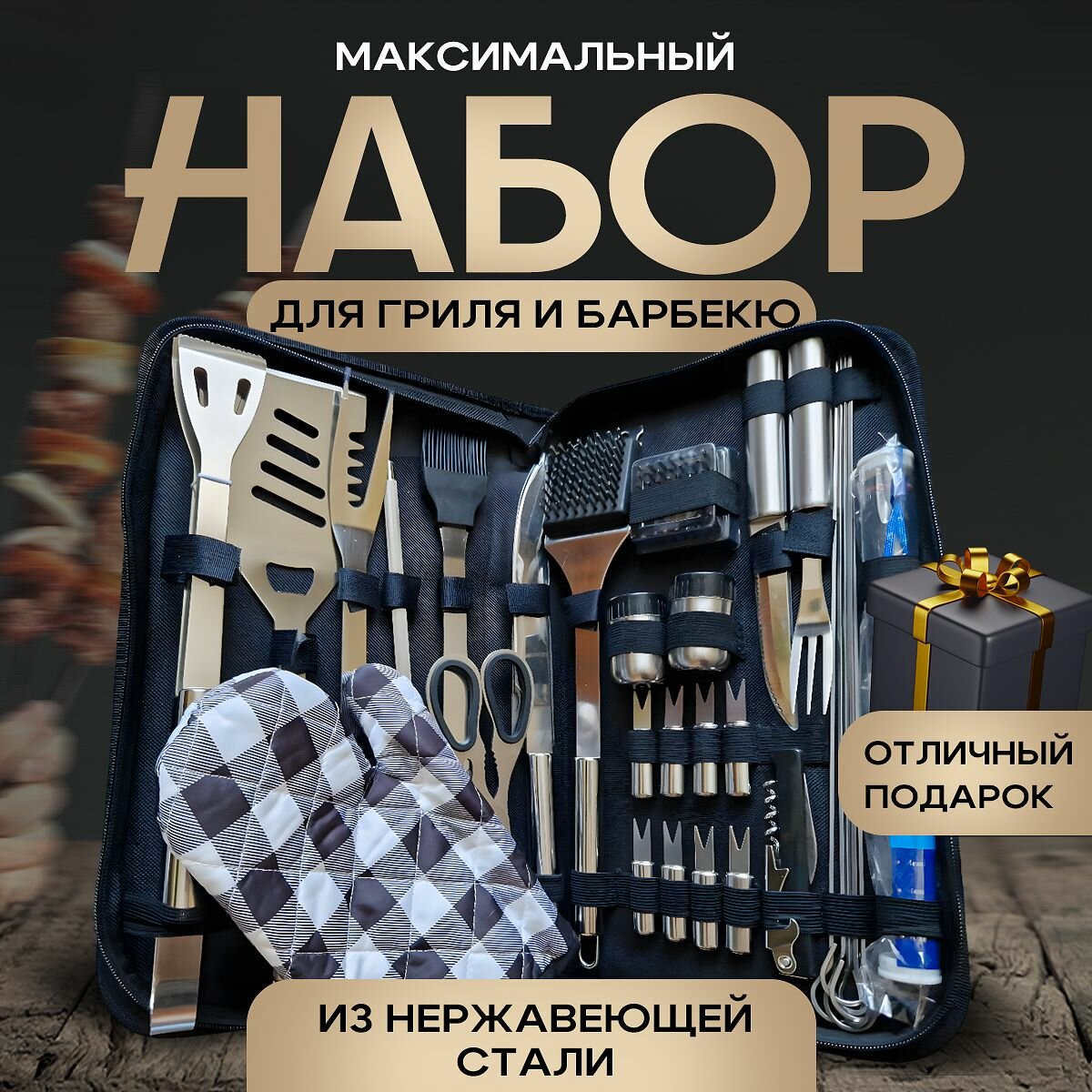 Купить Набор для барбекю и гриля подарочный мужской в кейсе 30 предметов . Набор для пикника /шашлыка / мангала .