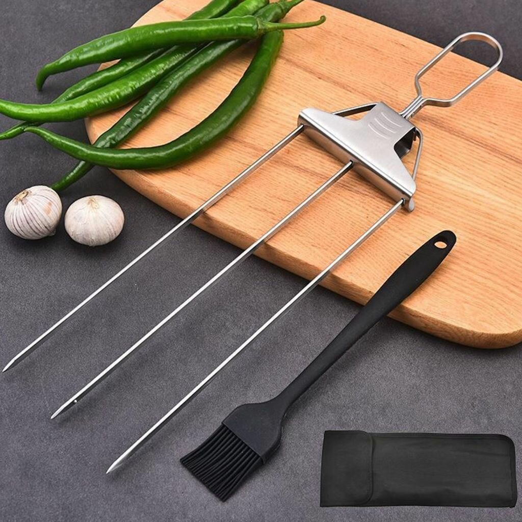 Трехголовые шампуры для барбекю из нержавеющей стали, кухонный инструмент гриля, идеальный подарок влюбленных интересное:
