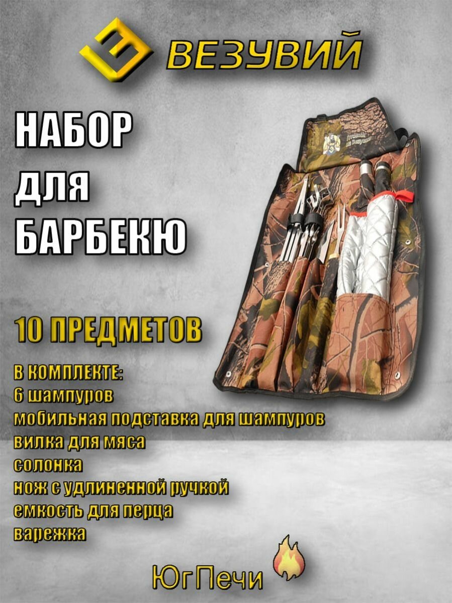 Набор для барбекю ВЕЗУВИЙ AB026, 10 элементов, нержавеющая сталь, в чехле интересное: