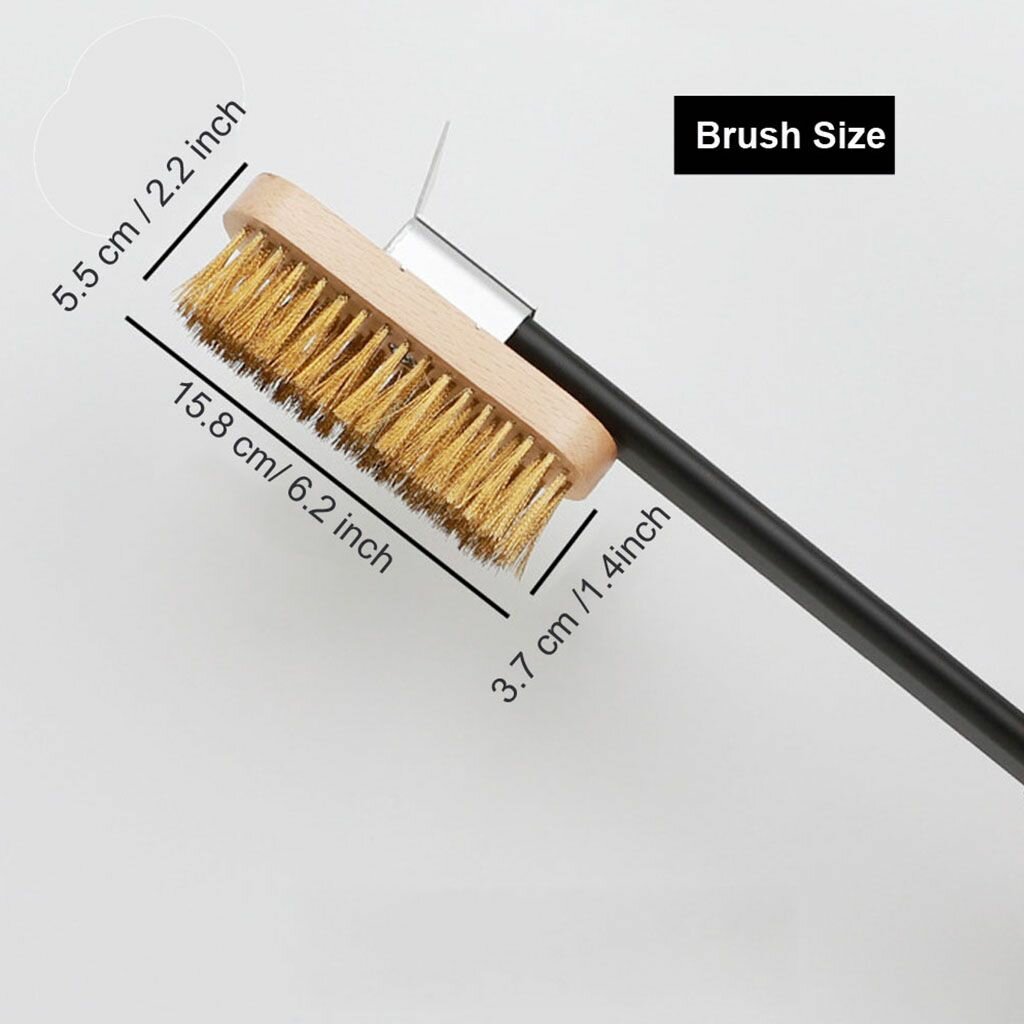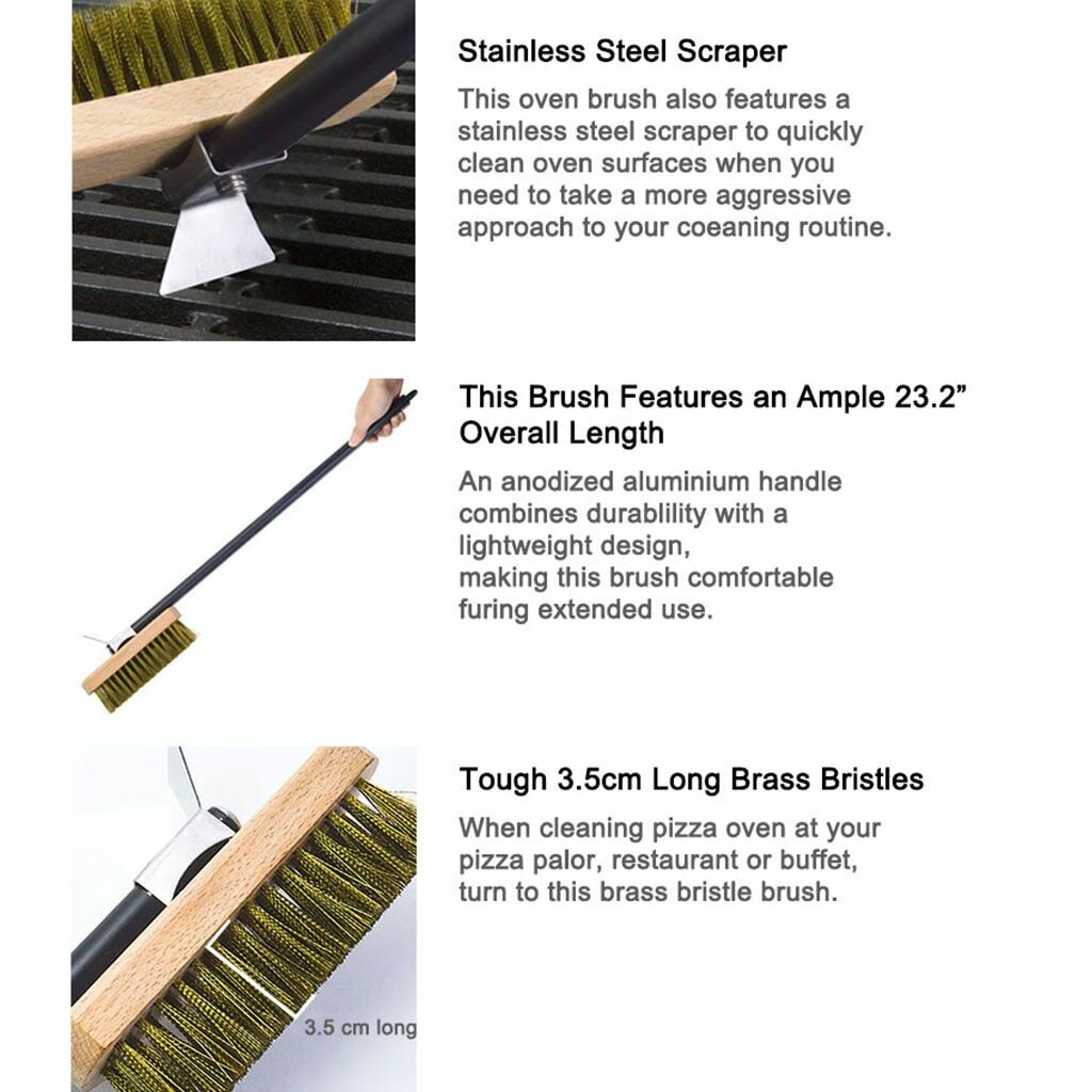 Щетка для духовки пиццы со скребком из латунной щетины идеальной кожуры, длинной ручкой и вращающимся элементом. интересное: