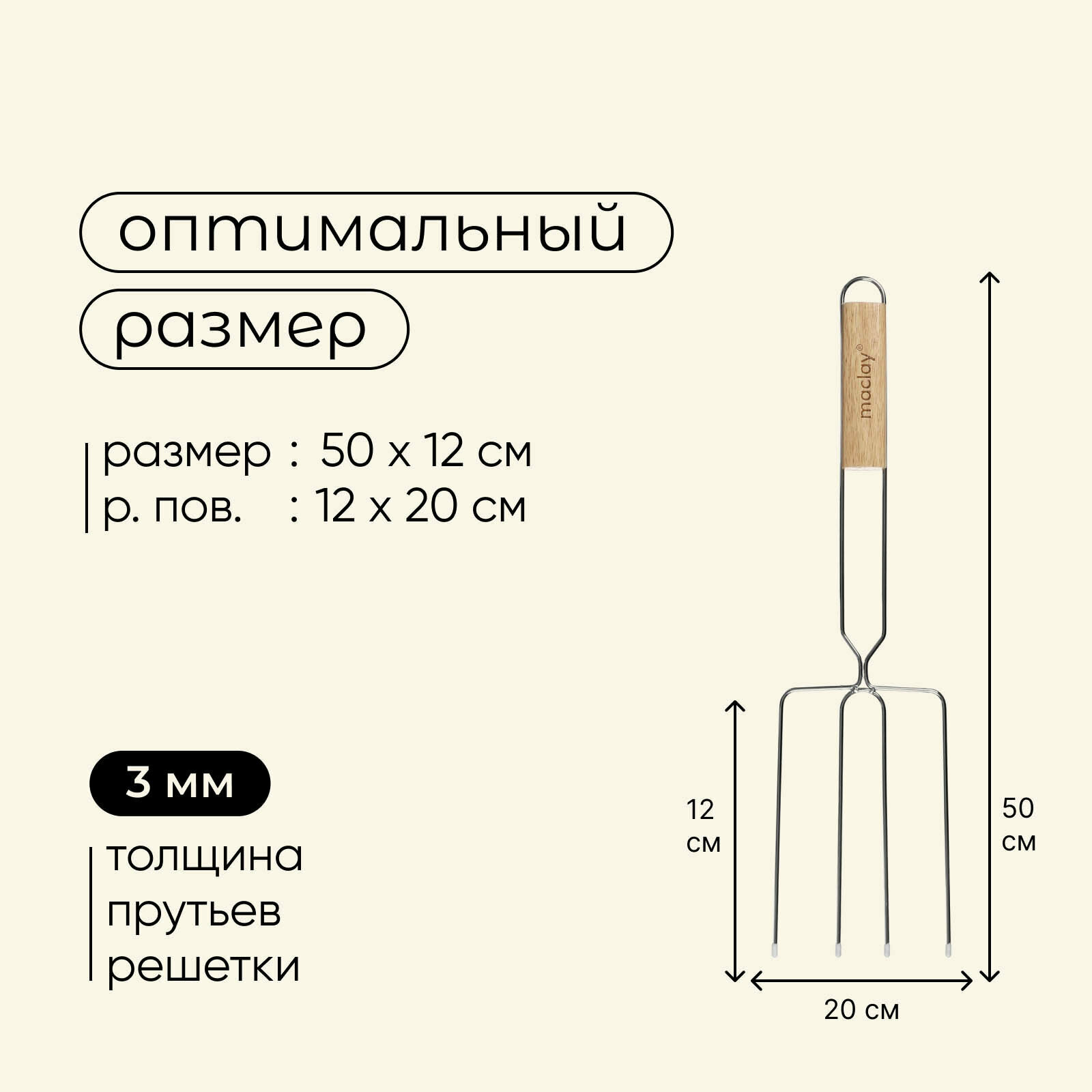 Вилка - гриль для сосисок maclay, 12 x 20 см, хромированная сталь, для мангала интересное: