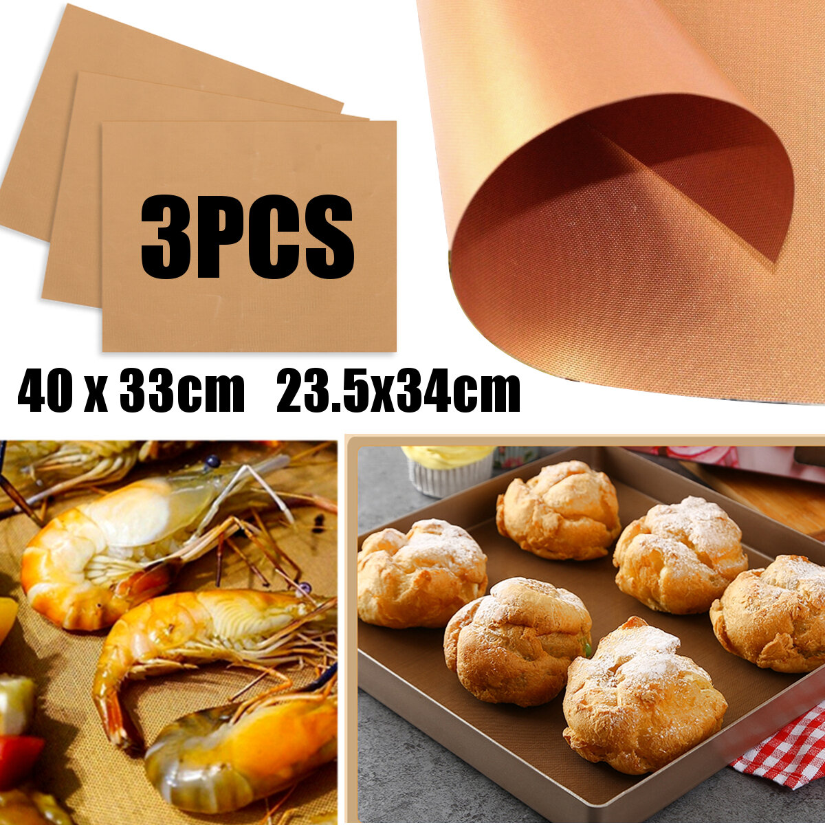 Купить Набор из 3 медных ковриков для гриля, антипригарные коврики для гриля и выпечки
