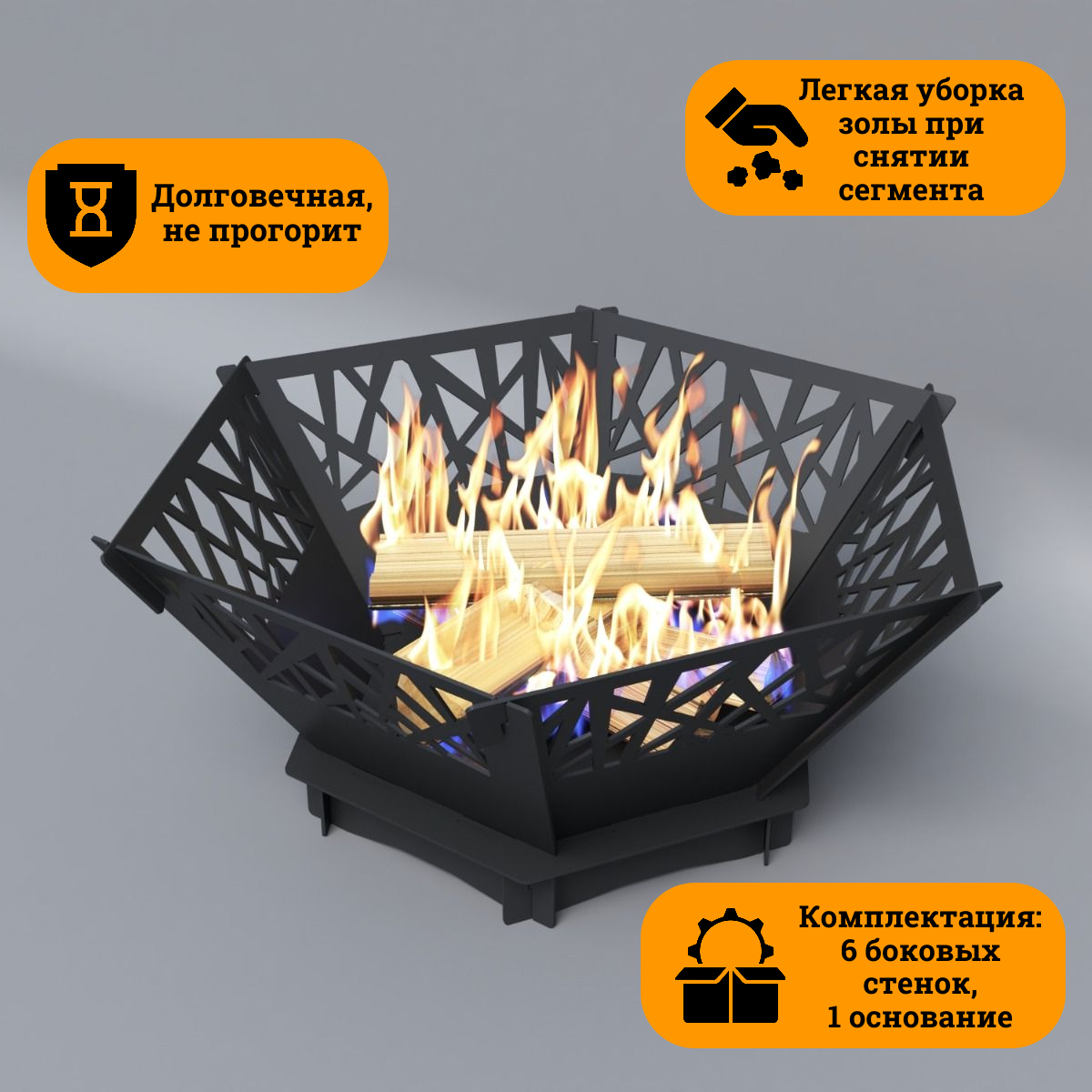 Костровая чаша-мангал Металл и Пламя, сталь 3мм, 50см х 50см, с зольником