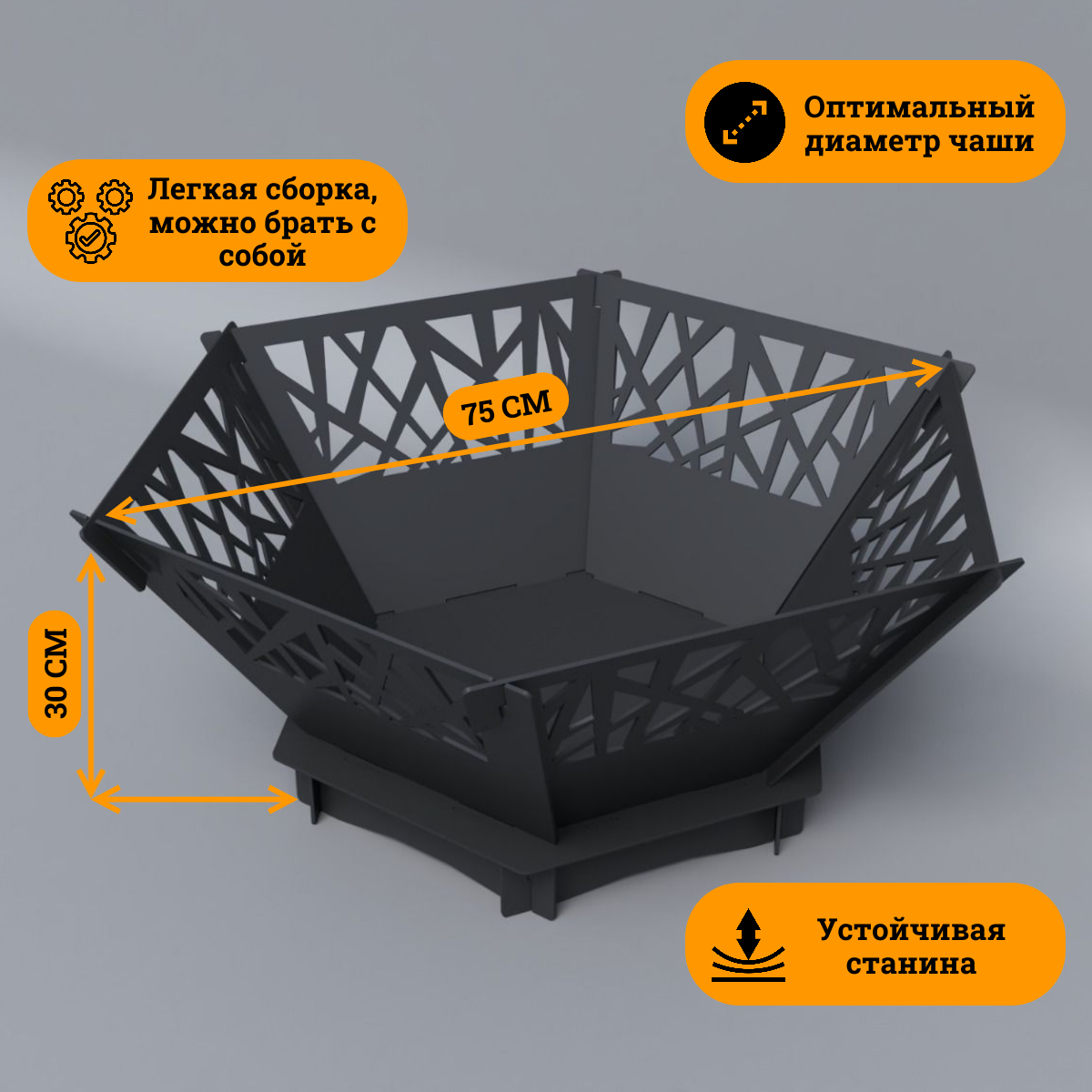 Костровая чаша "УЮТ" от бренда Металл и пламя, жаропрочная сталь 3мм, 80см
