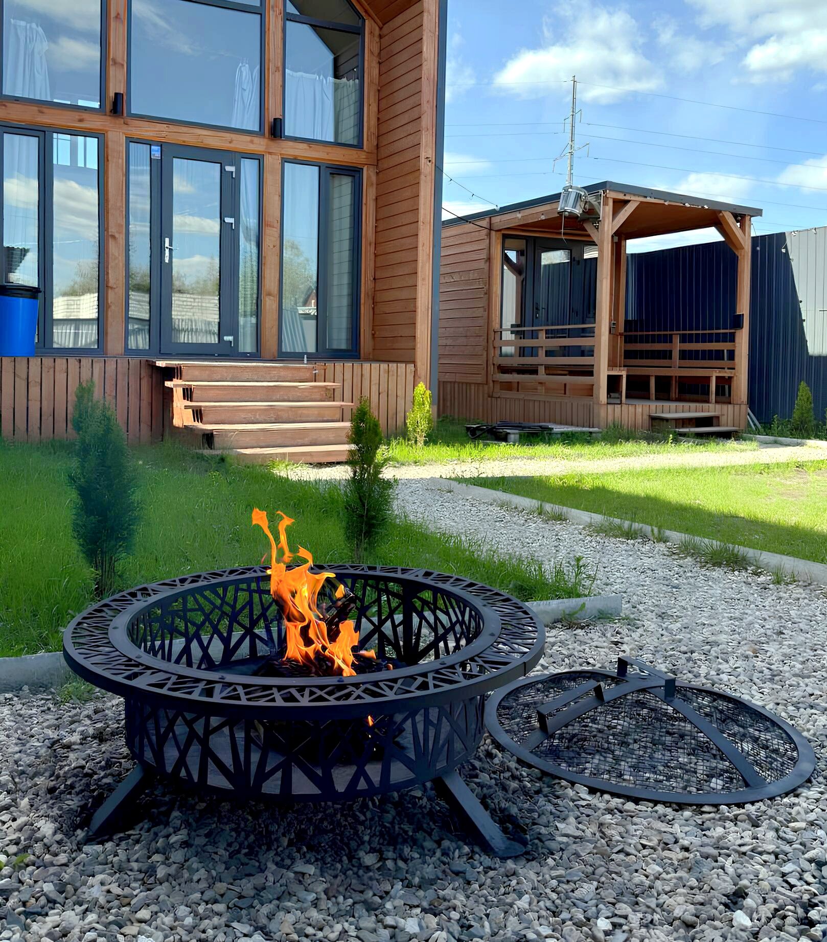 Костровая чаша "Фэмили" от бренда Металл и пламя, жаропрочная сталь, с искрогасителем, диаметр 70см